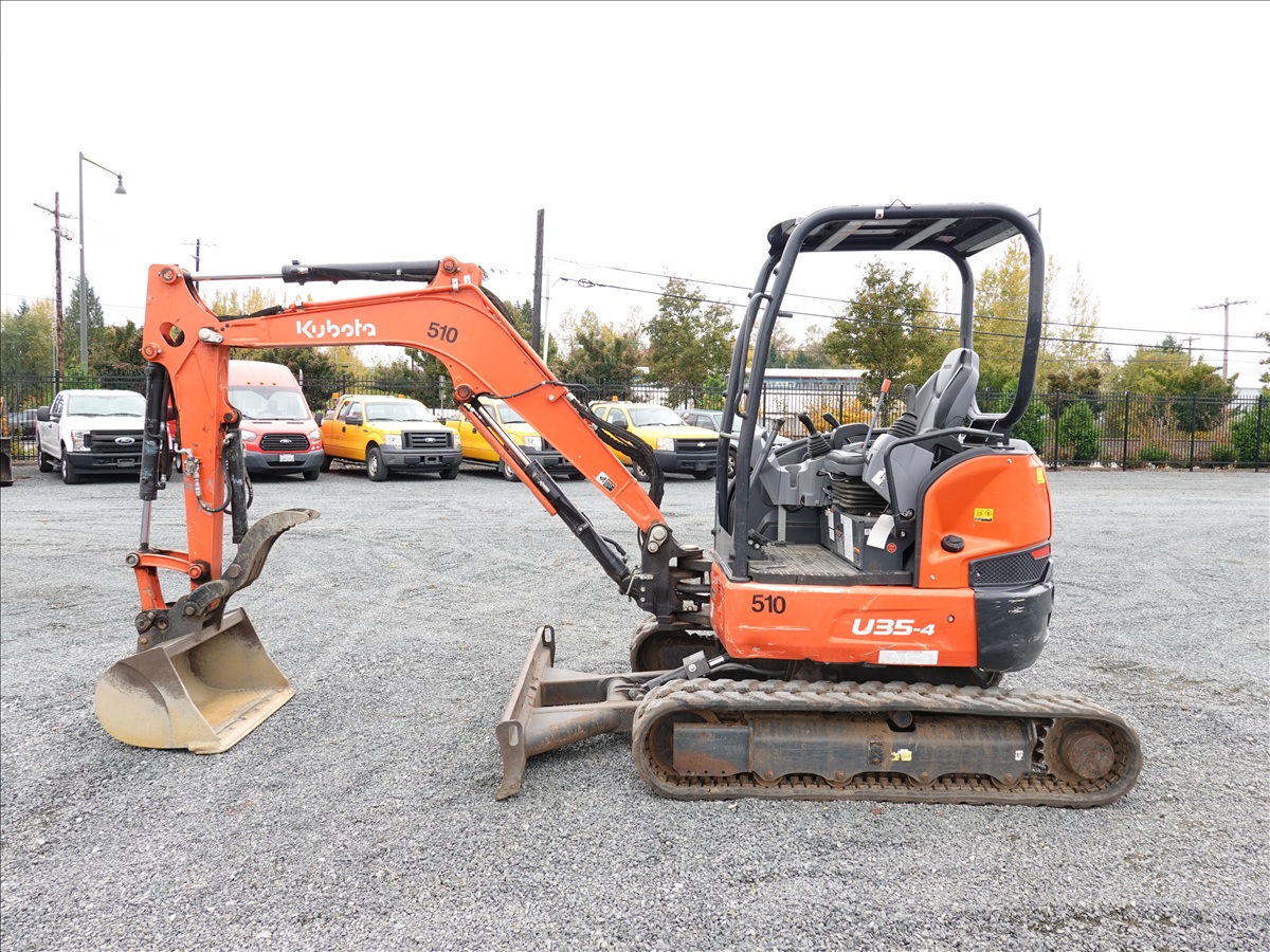 MINI EXCAVATOR, 24 HP D1703-M-DI-EF03, SWING BOOM, QC 34" CLEAN OUT BUCKET, HYD THUMB, BLADE, RUBBER TRACKS, CANOPY