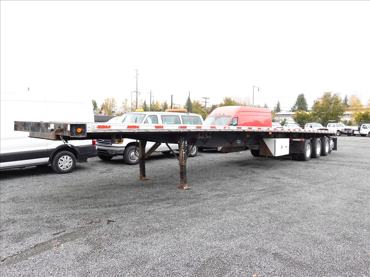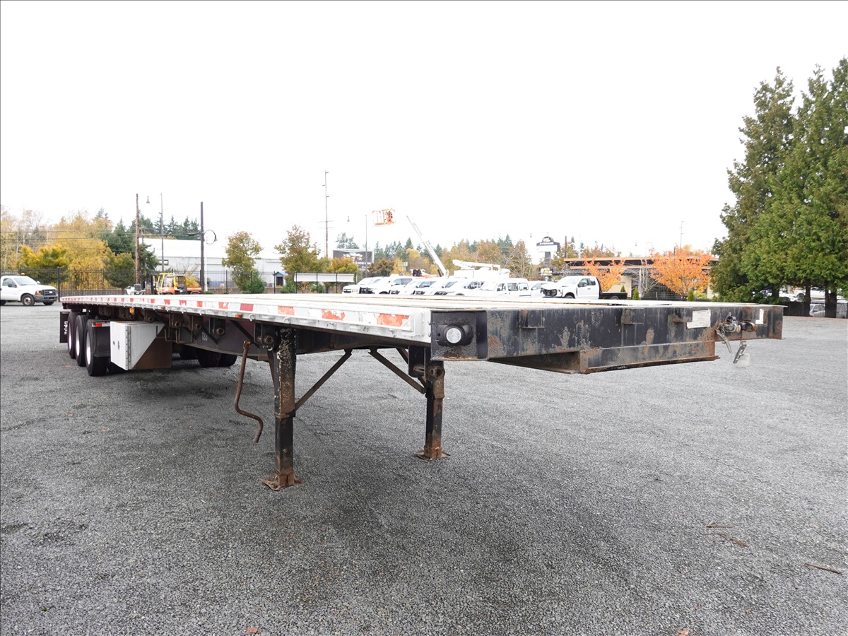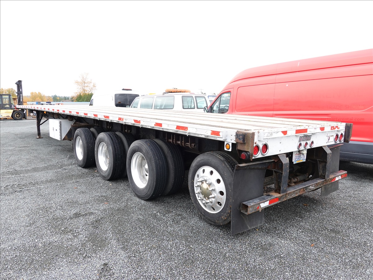QUAD/A. 53' 55,000 GVWR FLATBED TRAILER, SPRING SUSPENSION, DROP AXLE, A/B