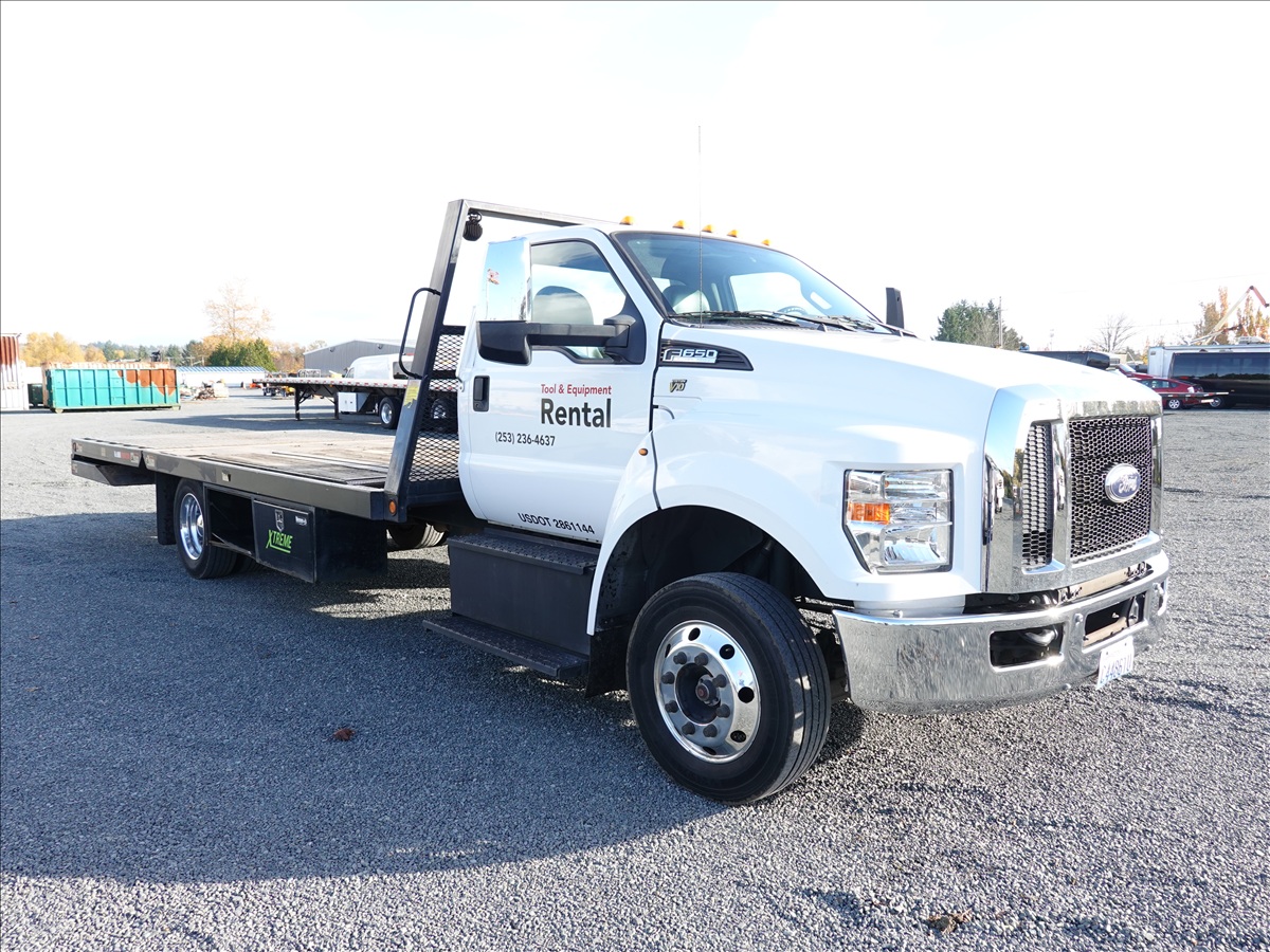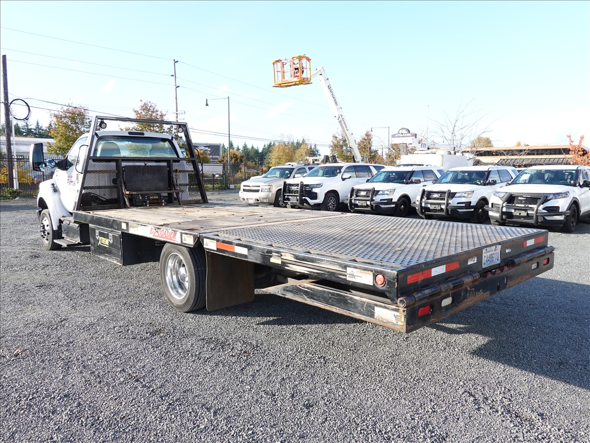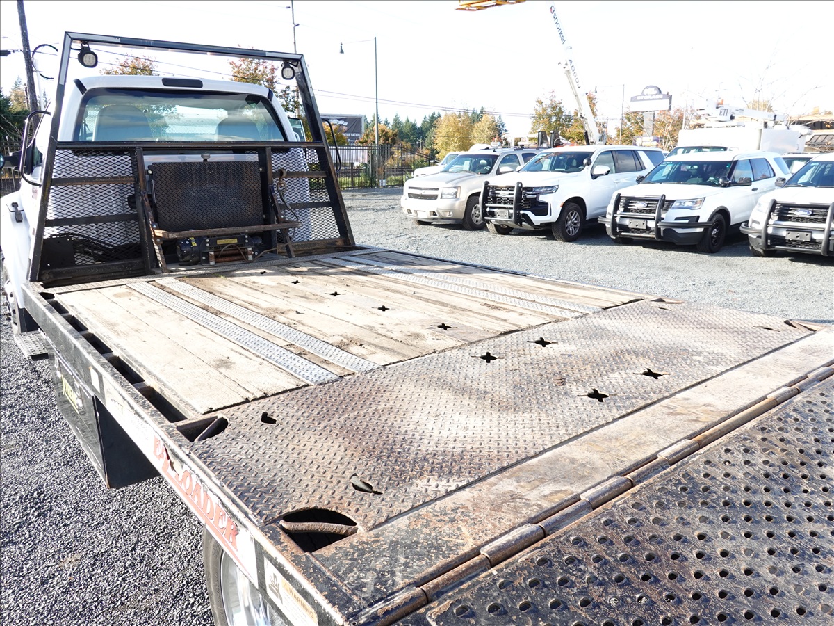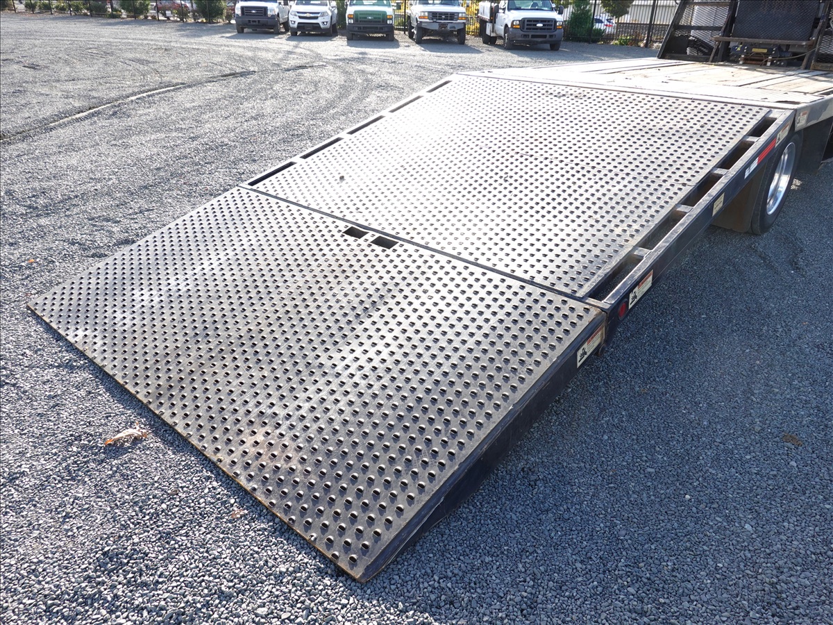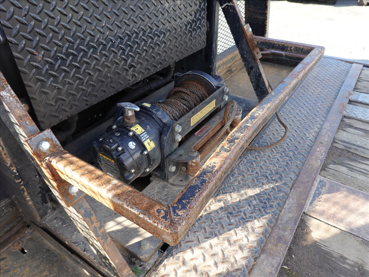 EQUIPMENT DELIVERY TRUCK, STEEL 18' FLATBED W/ 7' HYDRAULIC FOLDING RAMP, PIERCE 10K WINCH, V10, AUTO