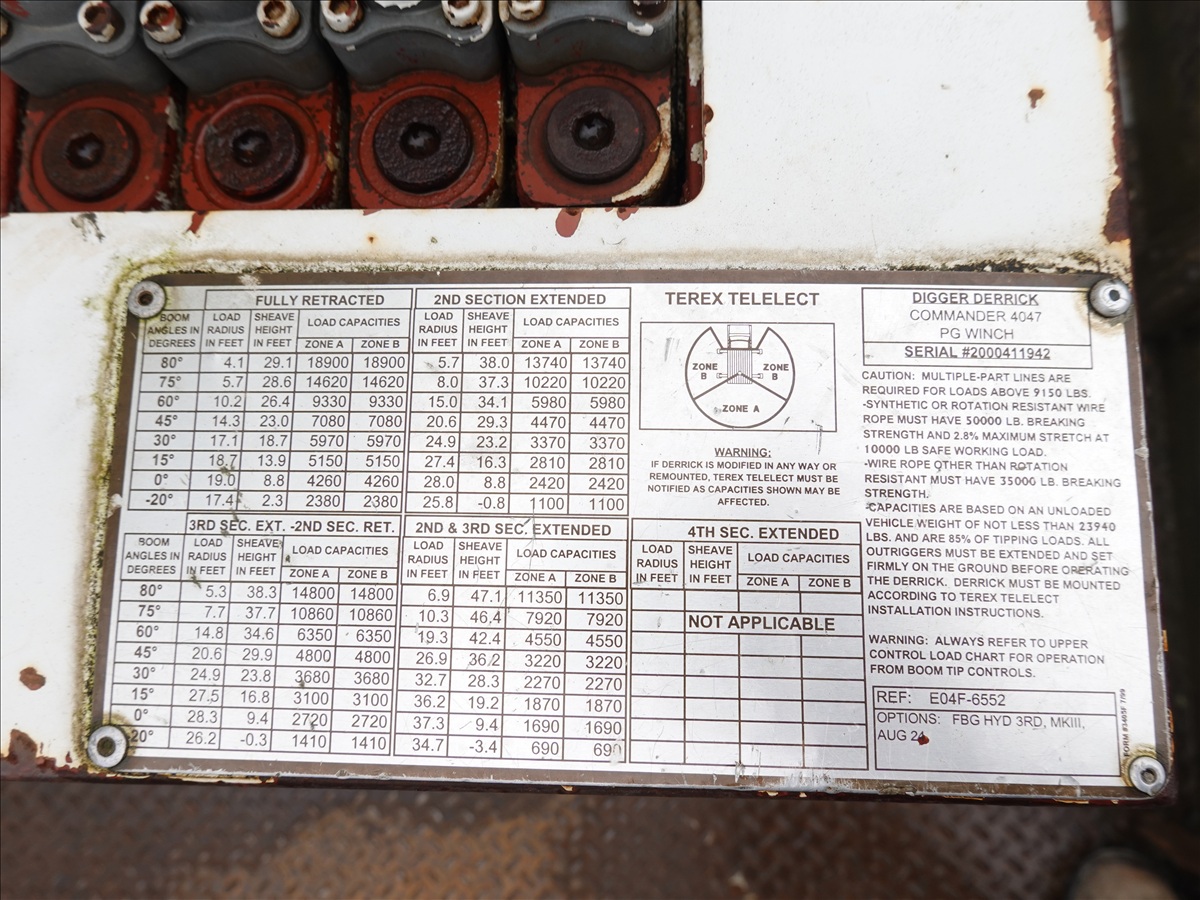DIGGER DERRICK, TEREX COMMANDER 4047, HYD OUTRIGGERS, DT466E, 6 SPD, A/B