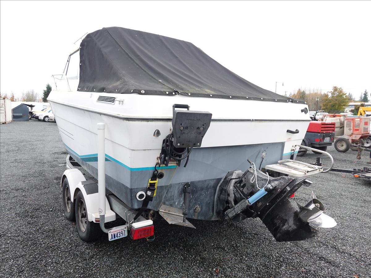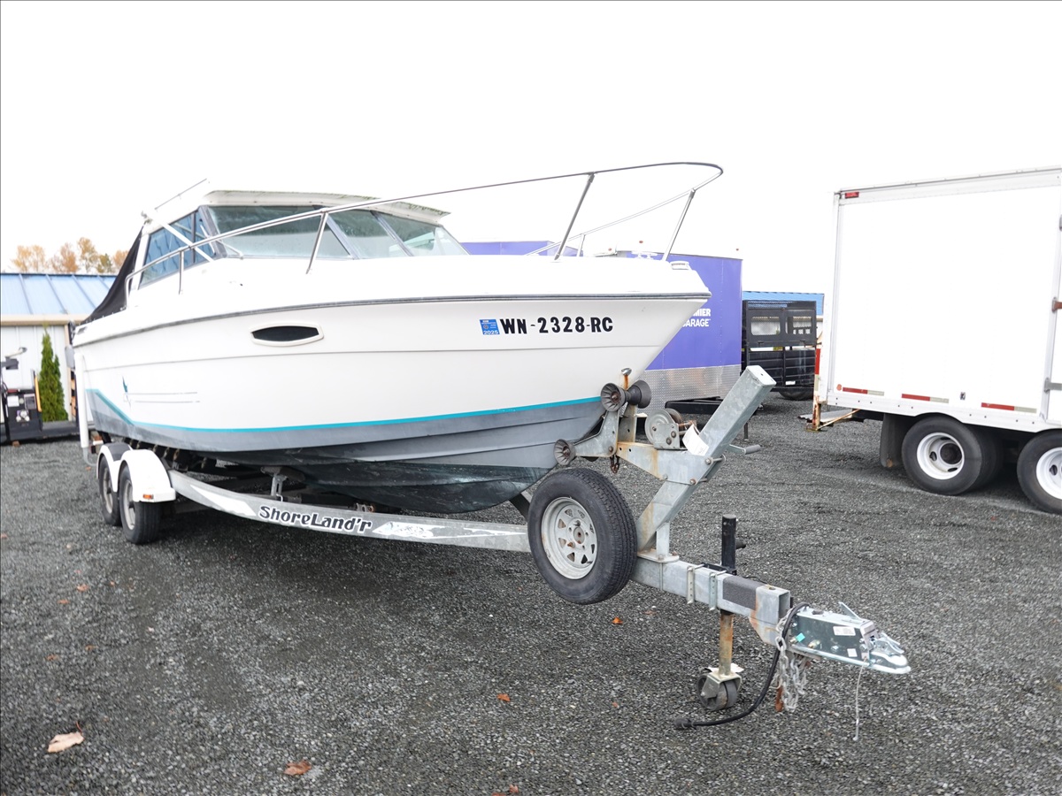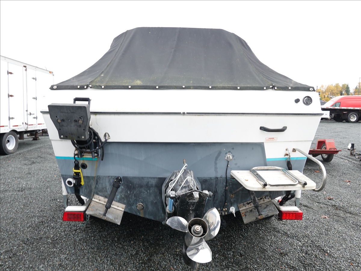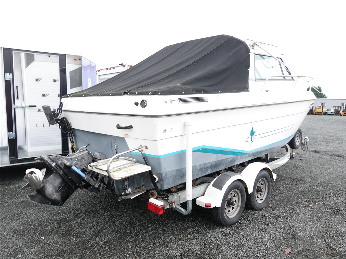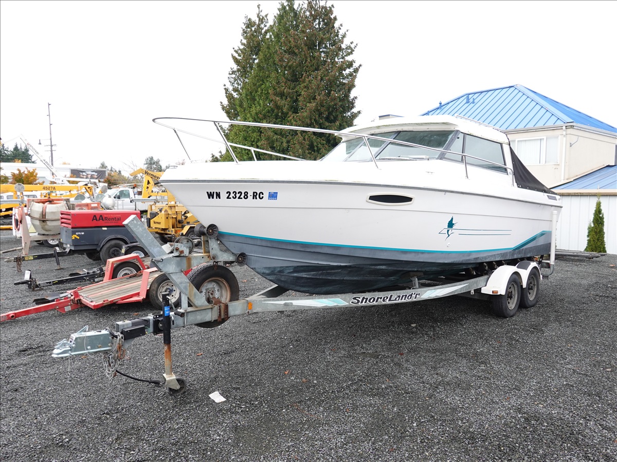 21' FIBERGLASS BOAT, 5/7L V8 GAS INBOARD, LOWRANCE ELITE NAV, DOWNRIGGERS W/ 1993 SHORELAND'R, T/A, APPROX 22' GALVANIZED BOAT TRAILER, SPRING SUSPENSION, SURGE BRAKES (S/N: 1MDC2WV29PK590611)