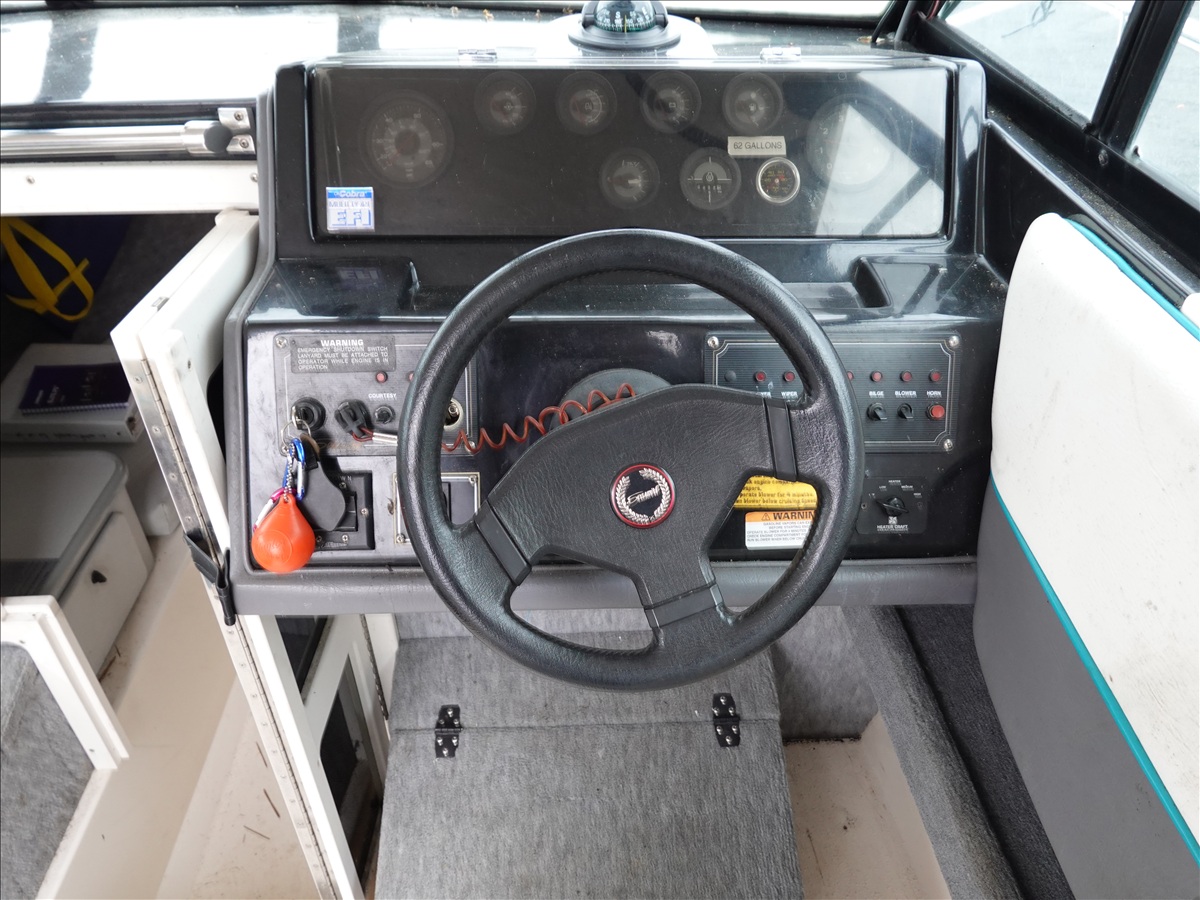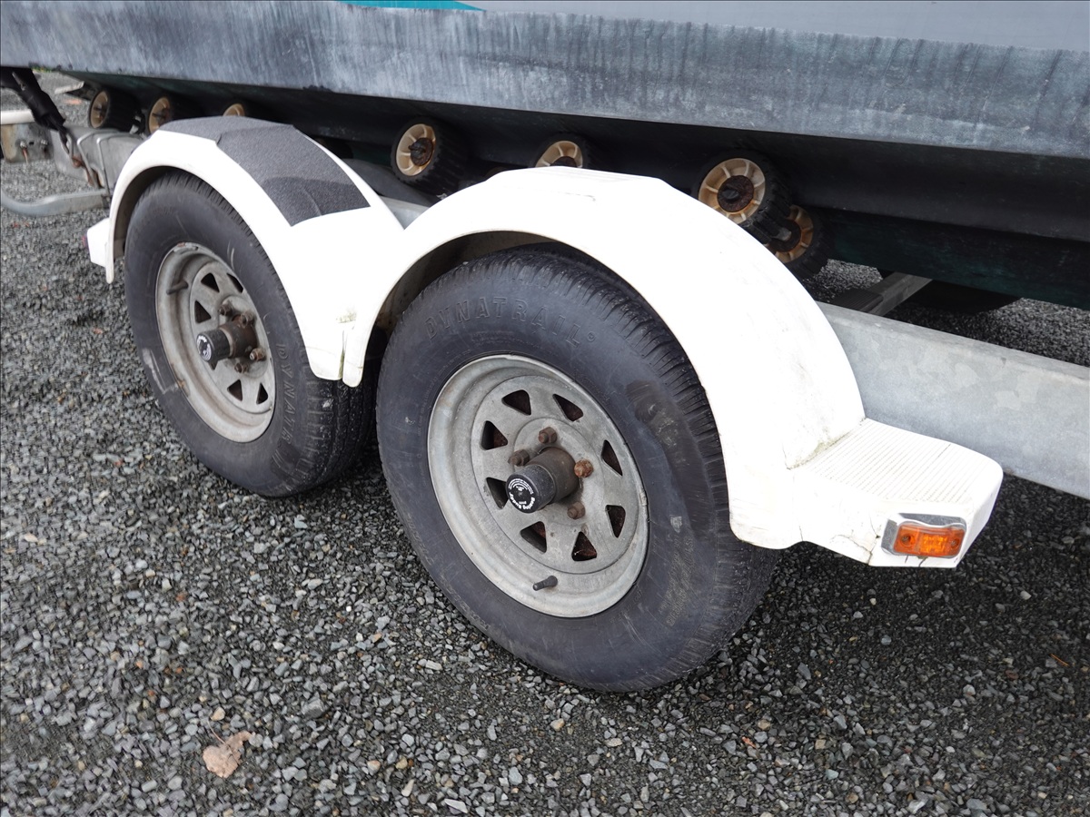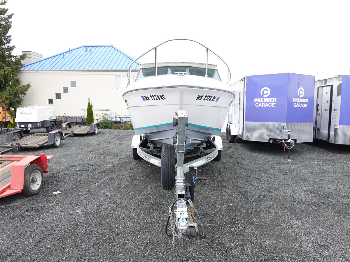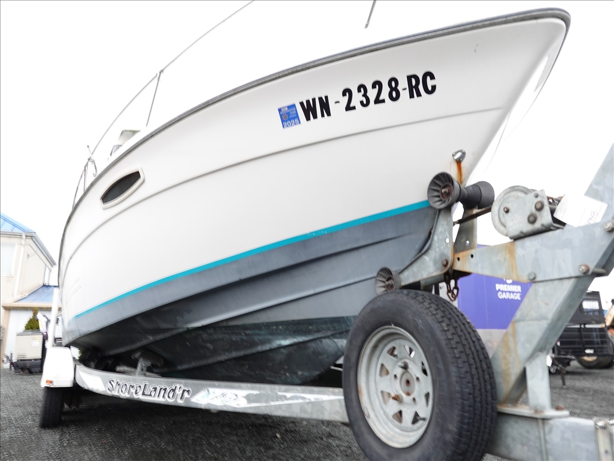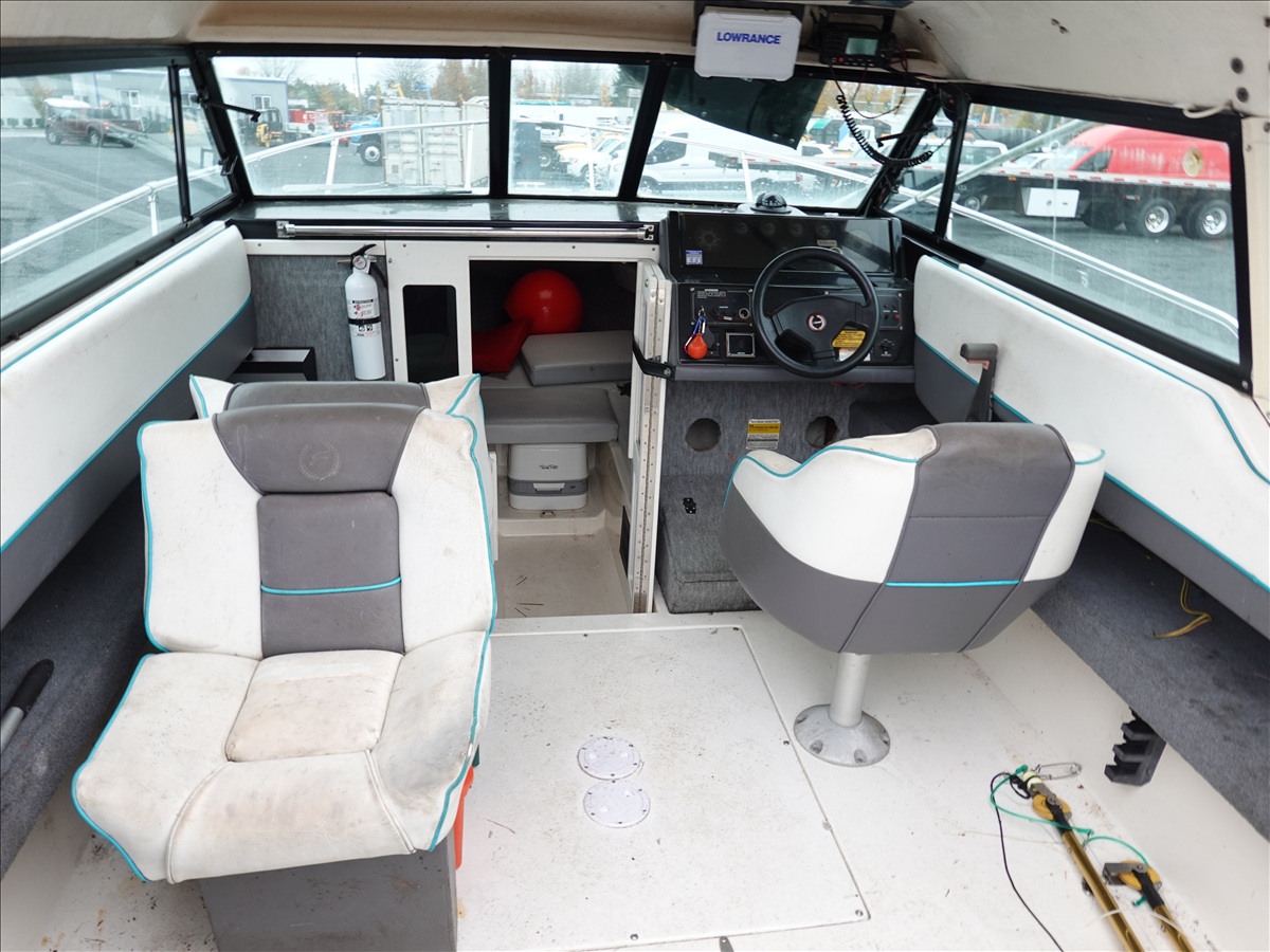 21' FIBERGLASS BOAT, 5/7L V8 GAS INBOARD, LOWRANCE ELITE NAV, DOWNRIGGERS W/ 1993 SHORELAND'R, T/A, APPROX 22' GALVANIZED BOAT TRAILER, SPRING SUSPENSION, SURGE BRAKES (S/N: 1MDC2WV29PK590611)