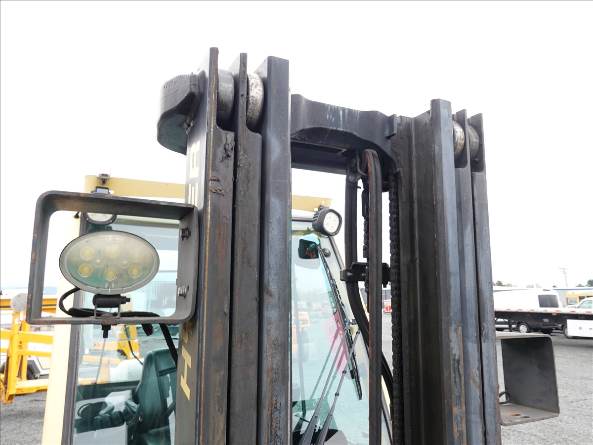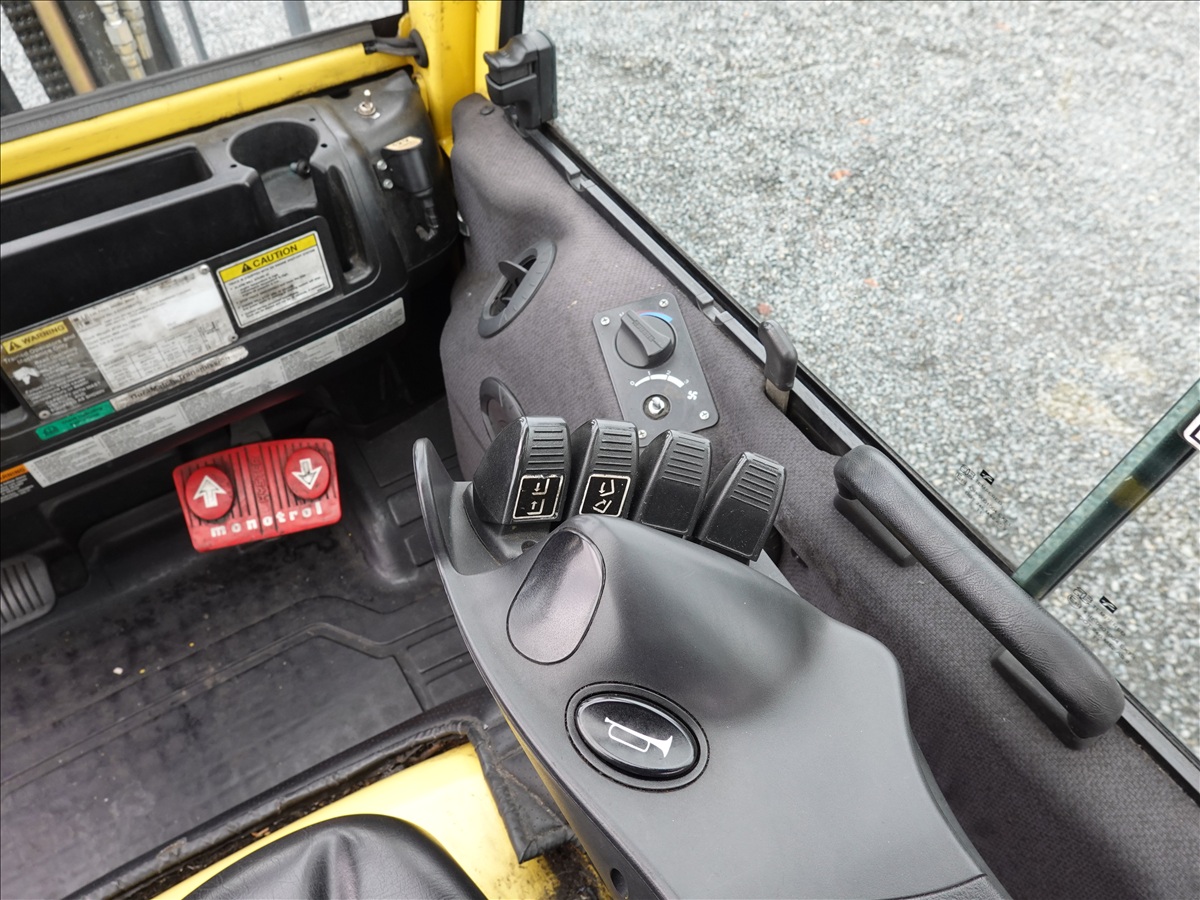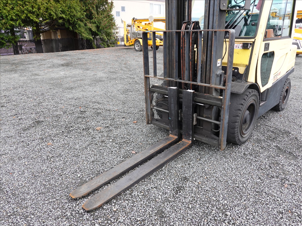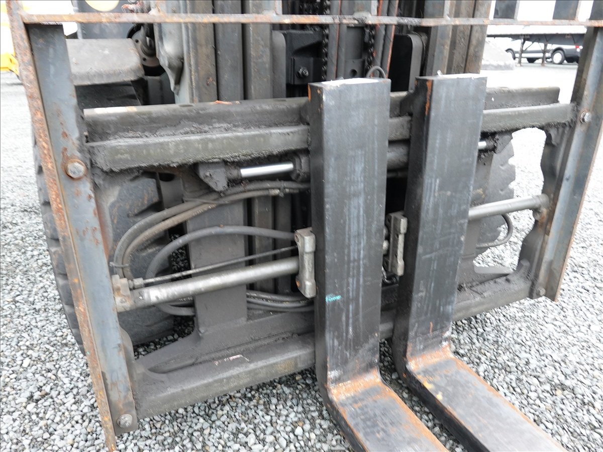 5,350 LB SOLID TIRE FORKLIFT, 181.9" FORK HEIGHT, 3-STAGE MAST, SIDE SHIFT, FORK POSITIONERS, 54" FORKS, FTC, 4 CYL LPOG, CAB