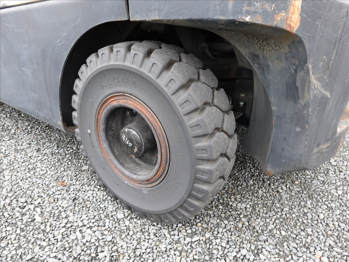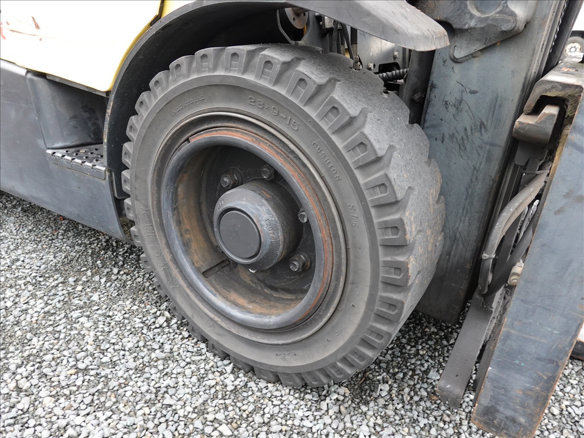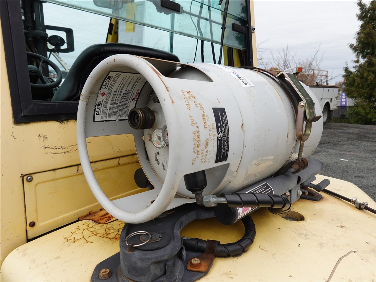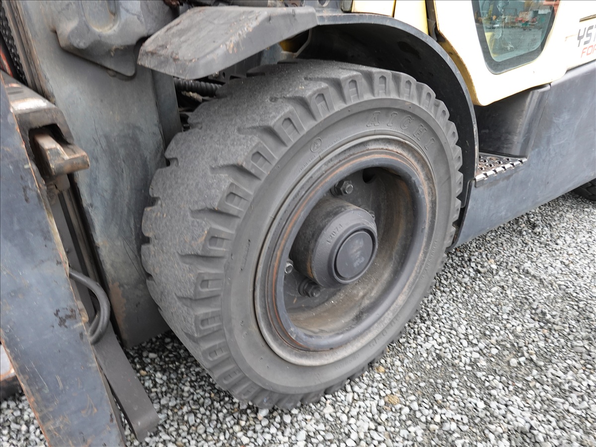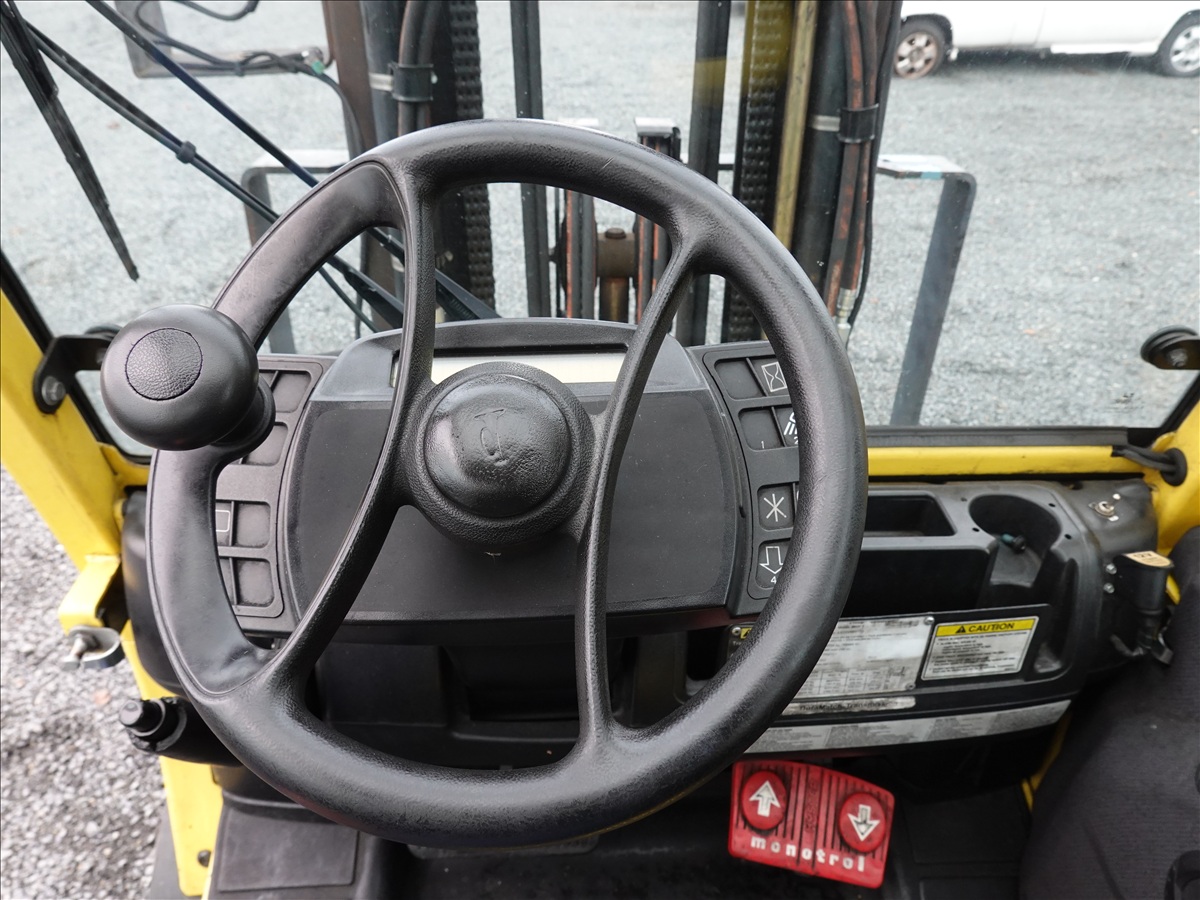 5,350 LB SOLID TIRE FORKLIFT, 181.9" FORK HEIGHT, 3-STAGE MAST, SIDE SHIFT, FORK POSITIONERS, 54" FORKS, FTC, 4 CYL LPOG, CAB