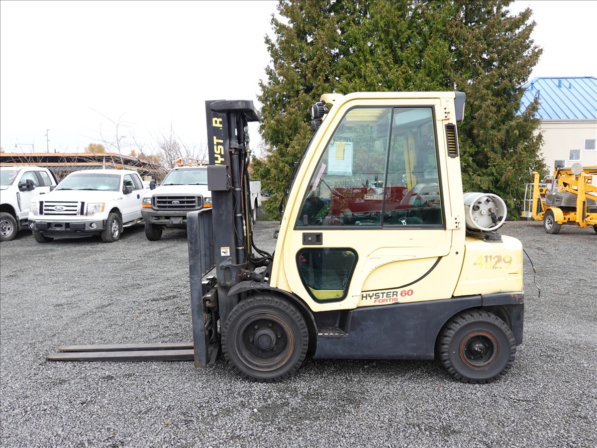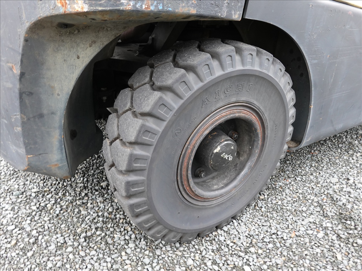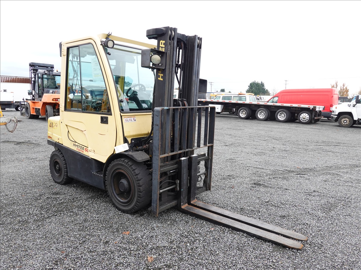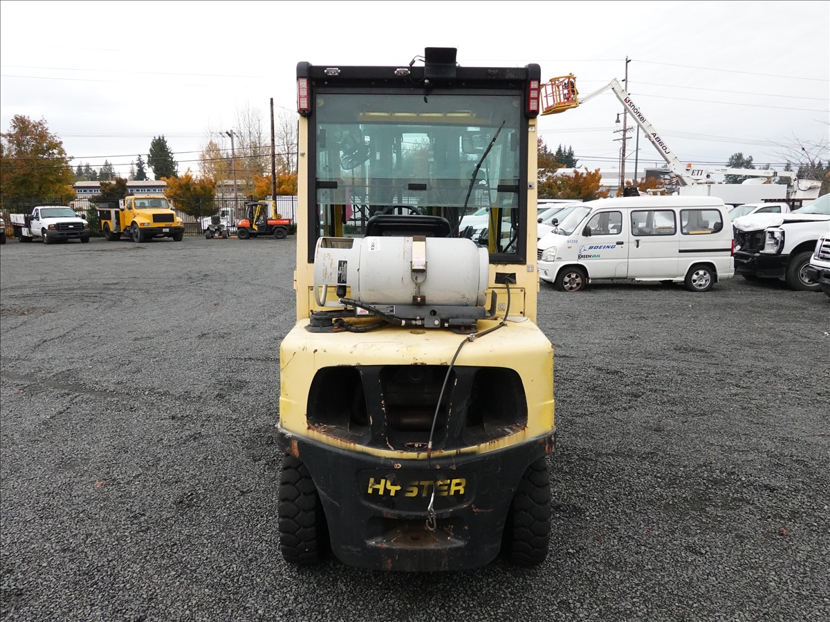 5,350 LB SOLID TIRE FORKLIFT, 181.9" FORK HEIGHT, 3-STAGE MAST, SIDE SHIFT, FORK POSITIONERS, 54" FORKS, FTC, 4 CYL LPOG, CAB