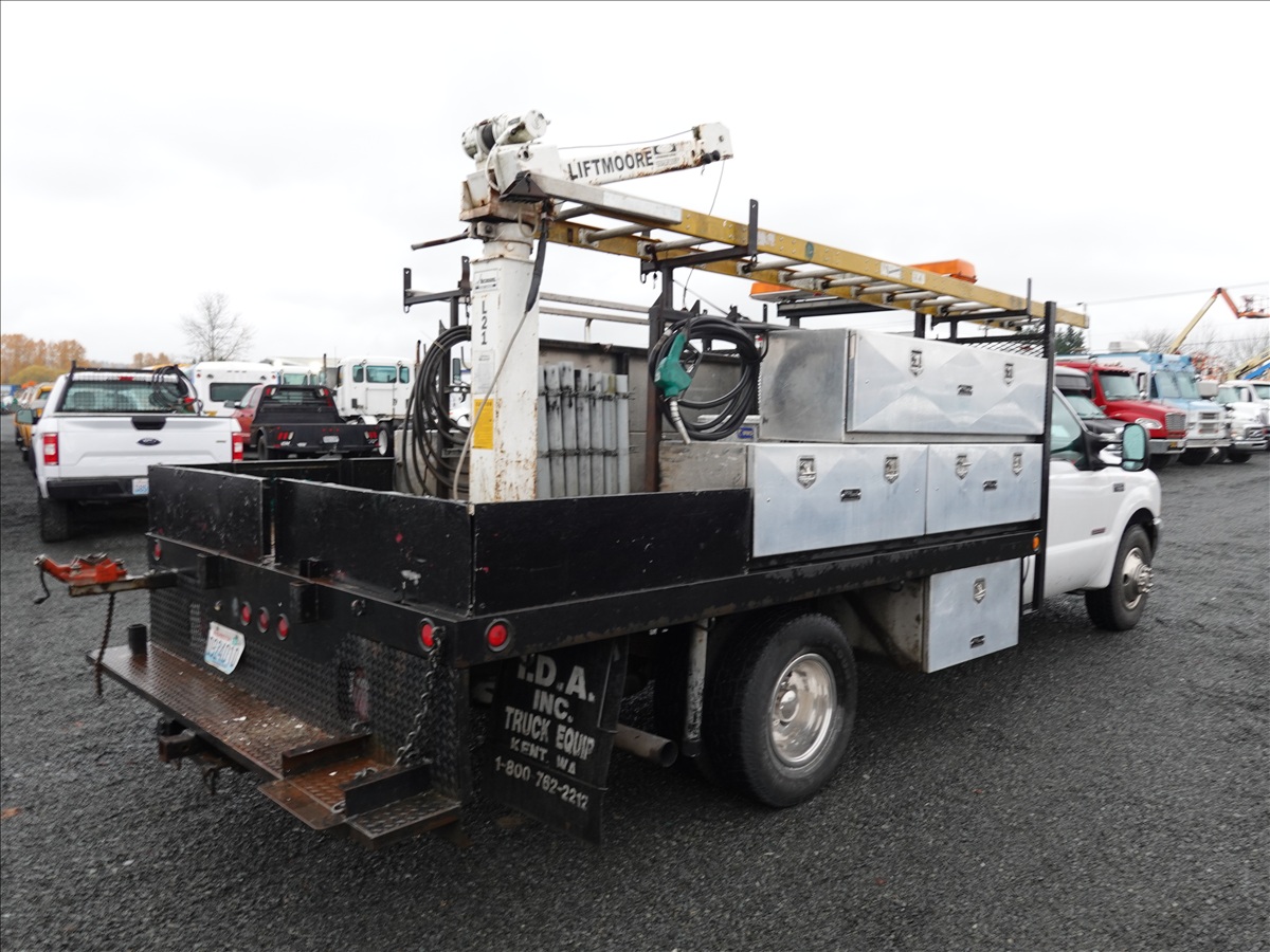 12' FLATBED, LIFTMOORE L-21 CRANE, POWER STROKE, AUTO