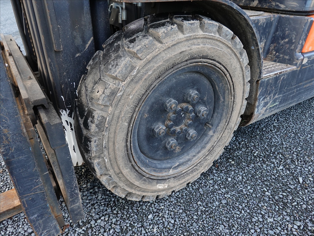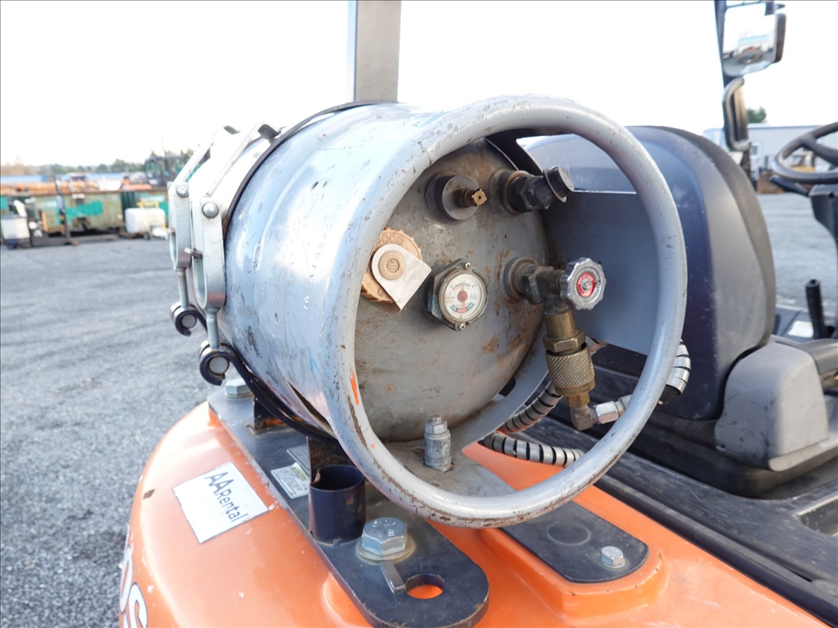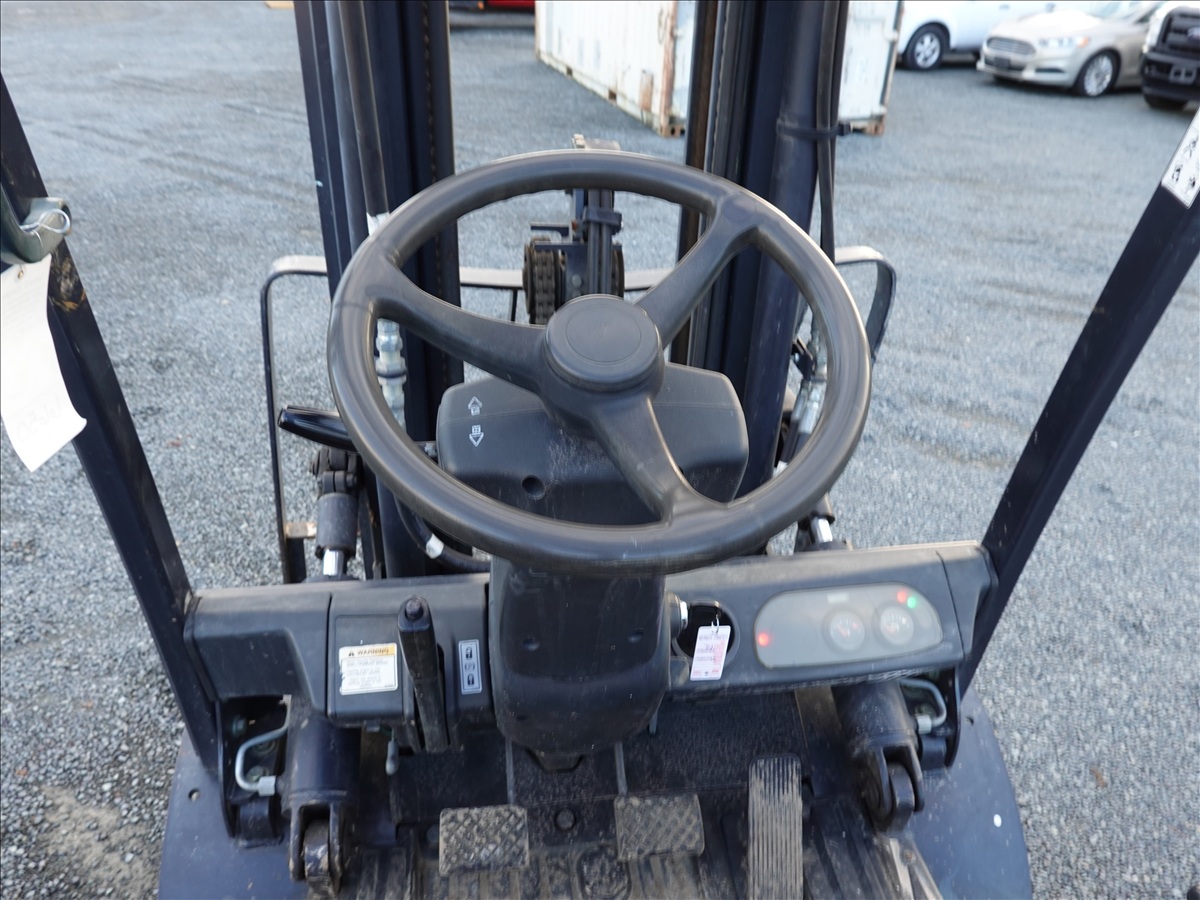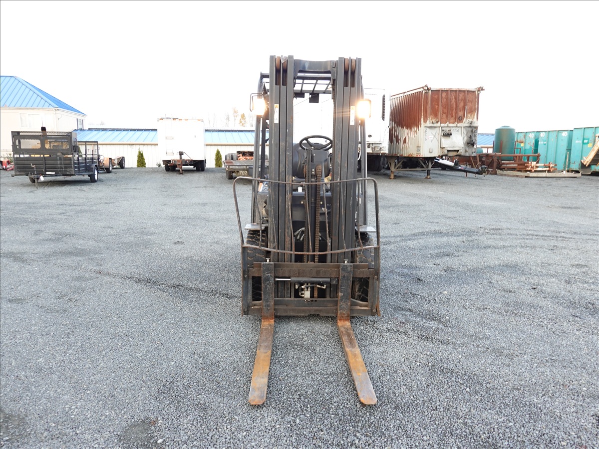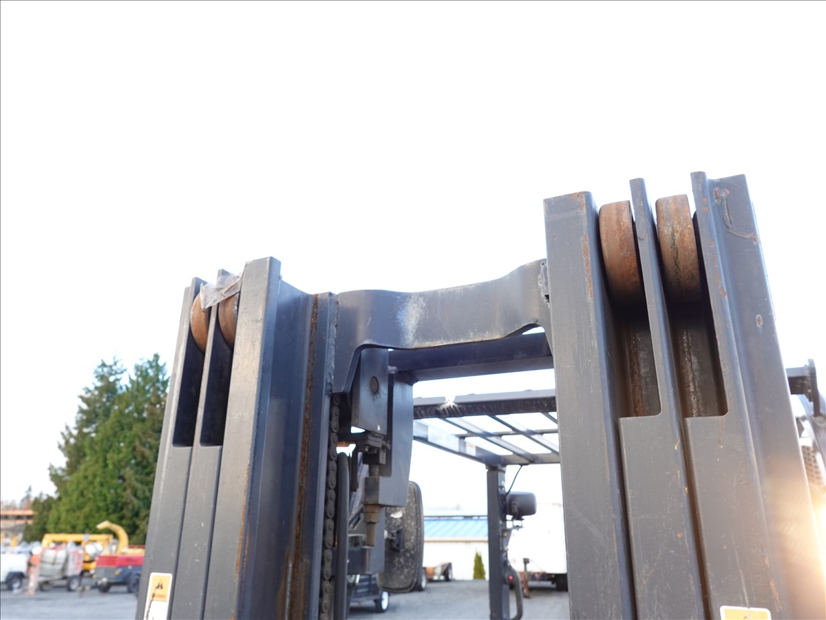 4,200 LB SOLID TIRE FORKLIFT, 189" FORK HEIGHT, 3-STAGE MAST, SIDE SHIFT, 47" FORKS, 4 CYL LPG