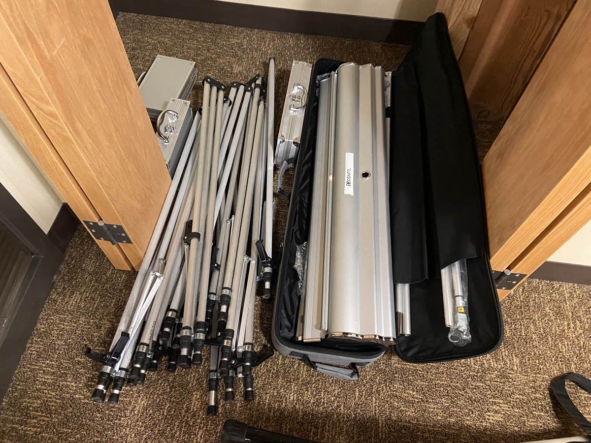ASSORTMENT OF TRADE SHOW ROLLUP POSTER DISPLAYS W/COVERS