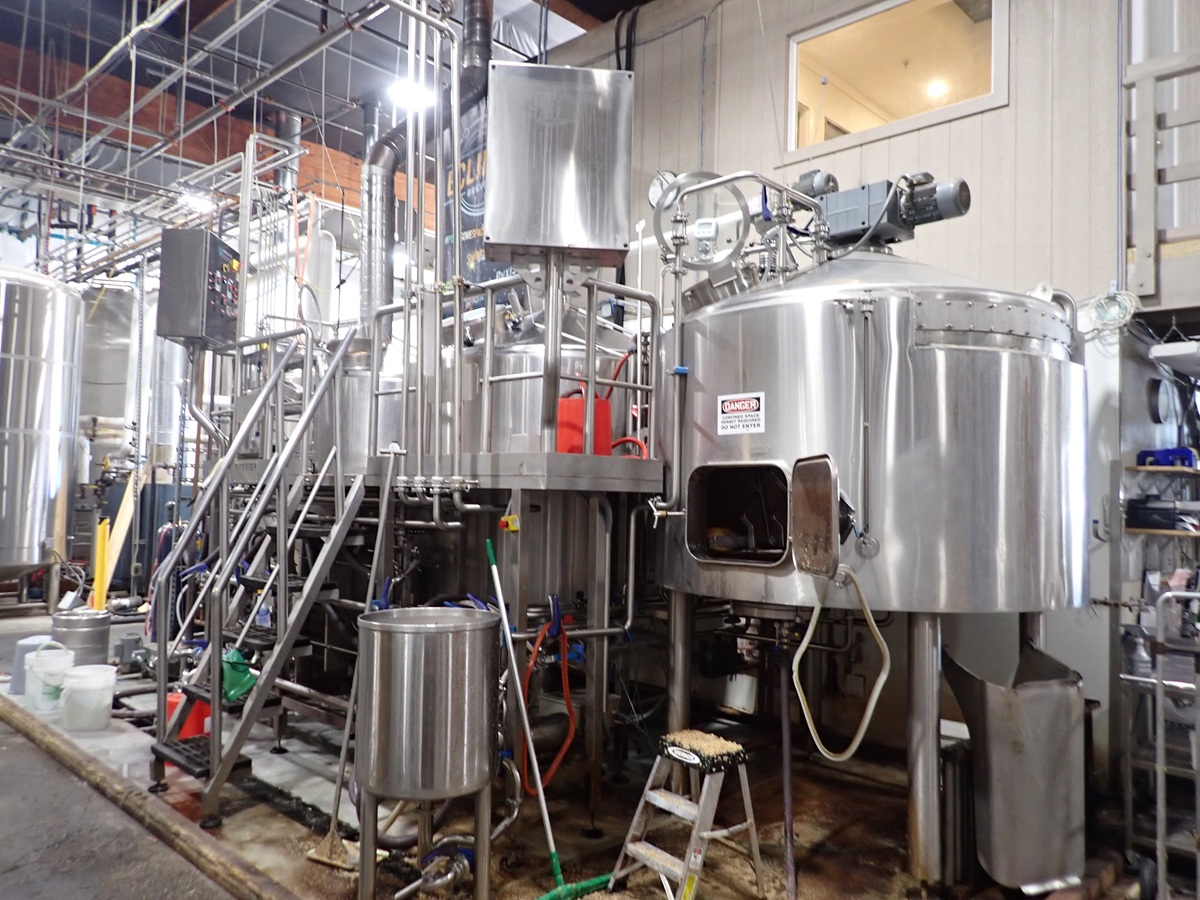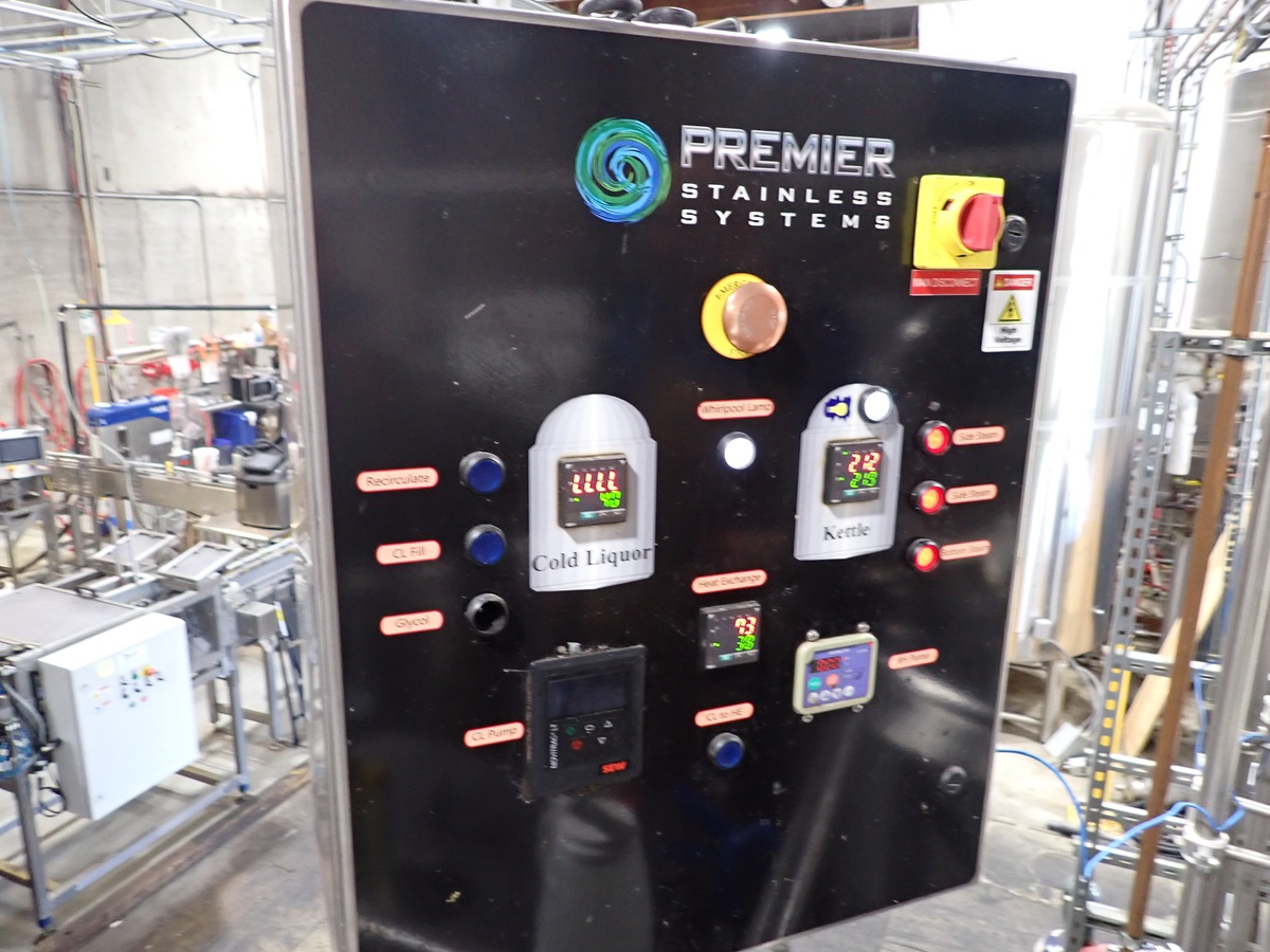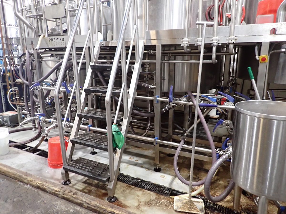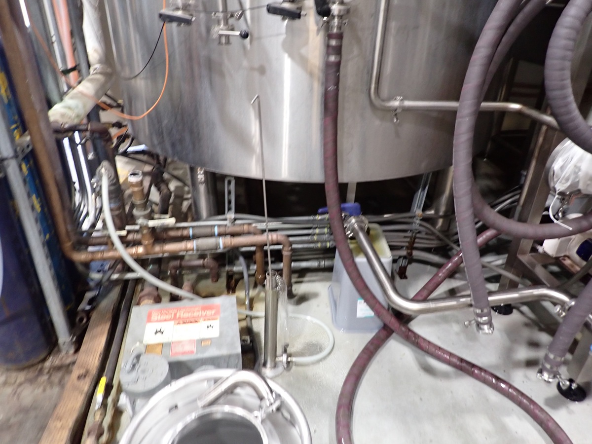 30 BARREL, 3-VESSEL BREWHOUSE, STEAM JACKETED KETTLE, WHIRLPOOL, MASH LAUTER TUN W/AGITATOR, HEAT EXCHANGER, (2) TRANSFER PUMPS, (2) CONTROL PANELS, CATWALK & PIPING