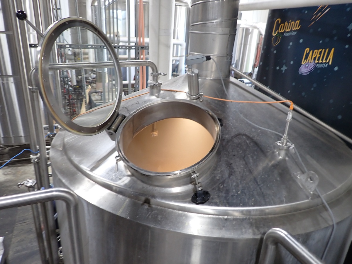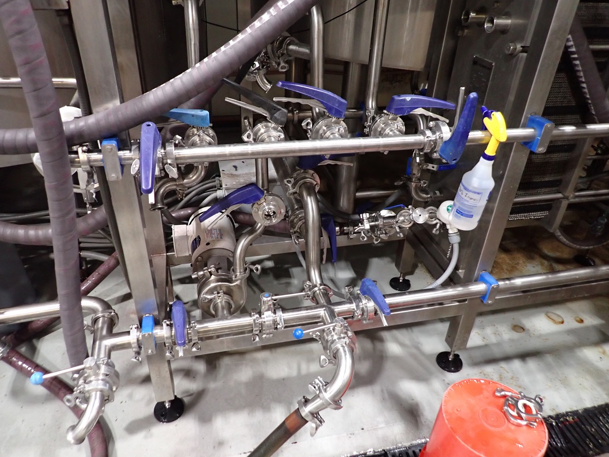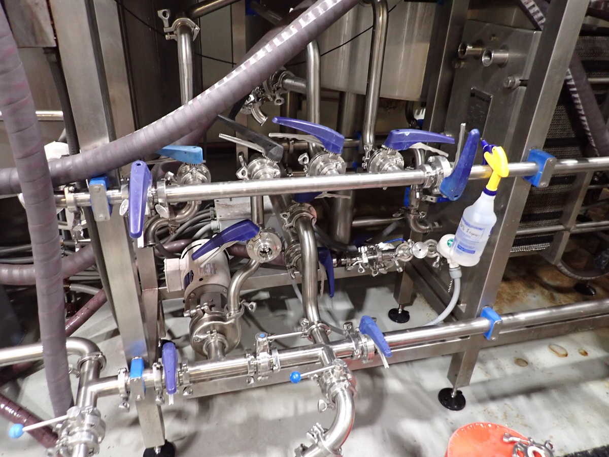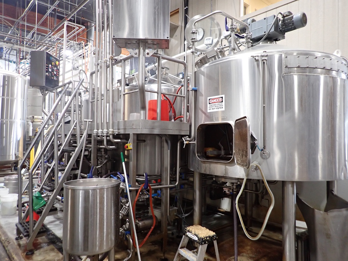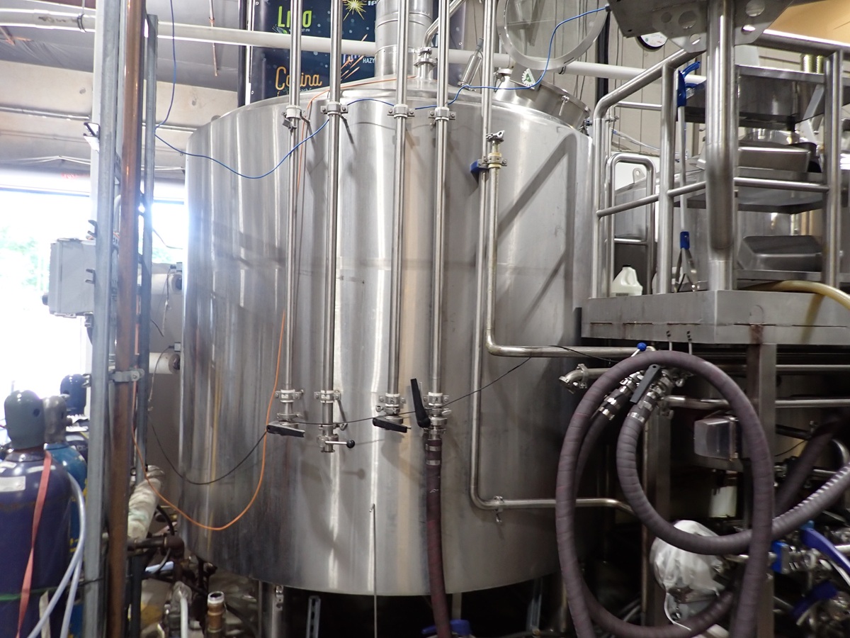 30 BARREL, 3-VESSEL BREWHOUSE, STEAM JACKETED KETTLE, WHIRLPOOL, MASH LAUTER TUN W/AGITATOR, HEAT EXCHANGER, (2) TRANSFER PUMPS, (2) CONTROL PANELS, CATWALK & PIPING
