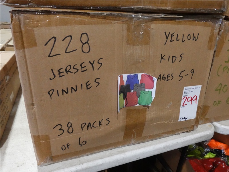 LOT, APPROX (228) SOCCER PINNIES/JERSEYS (KIDS, AGES 5-9, YELLOW)
