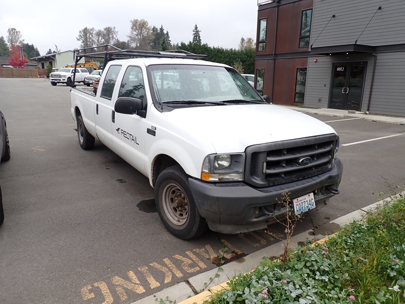 CREW CAB PICKUP TRUCK, V8, GAS, AUTO, 8' BED, AUX. FUEL TANK, TRUCK BOX, RACK