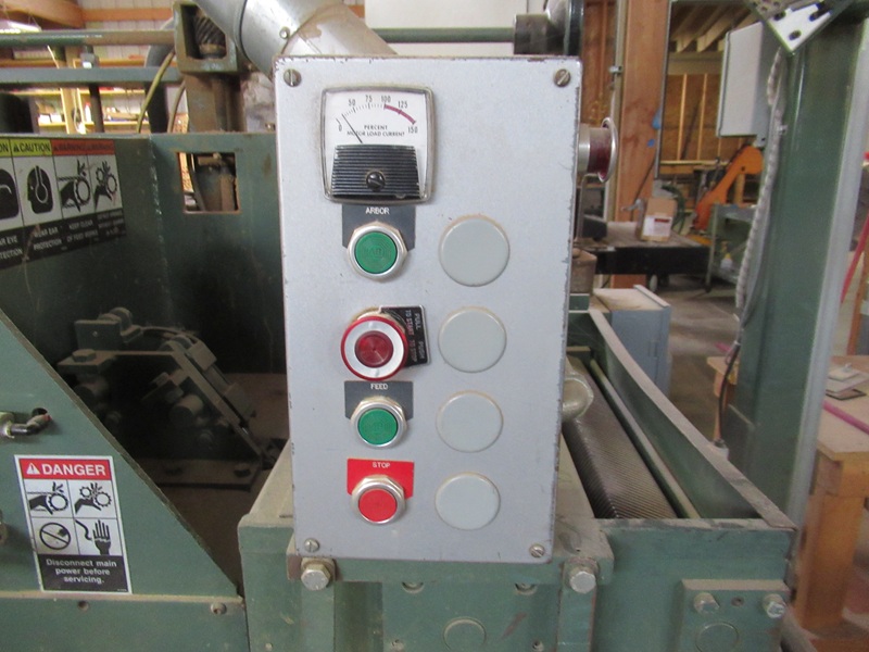 GANG RIP SAW, 12"W X 6" THROAT W/5' X 15" ROLLER CONVEYOR OUTFEED