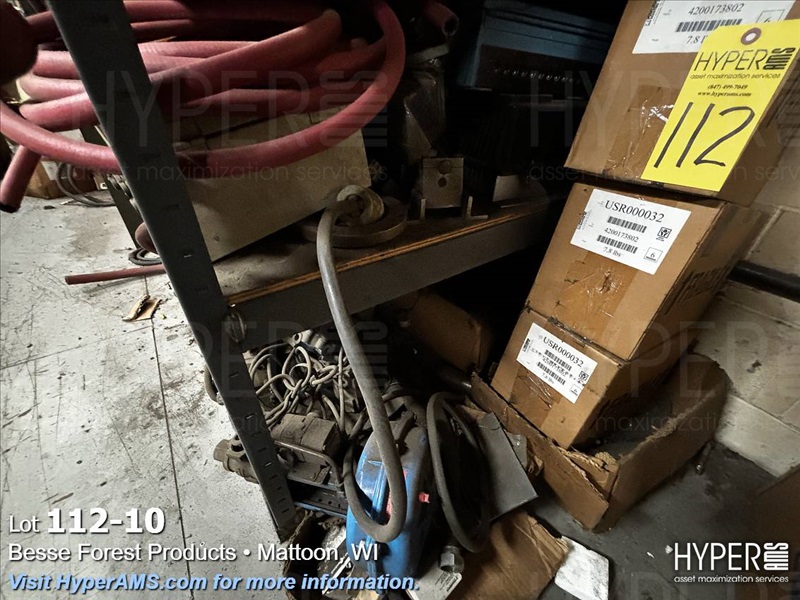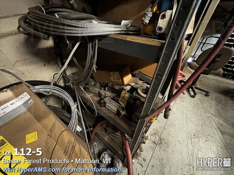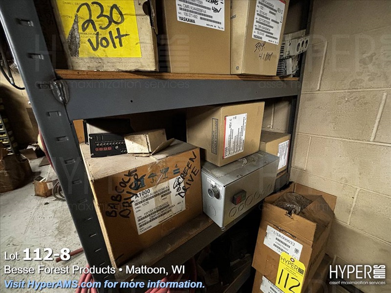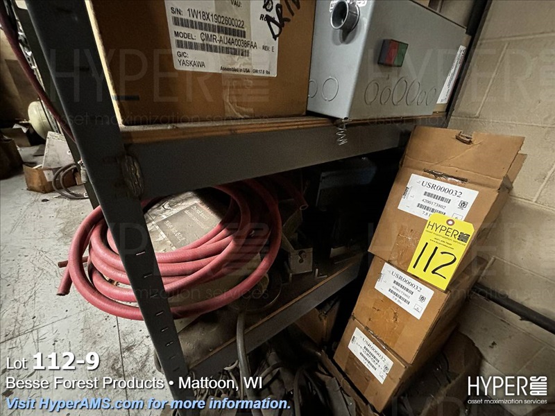 (2) SHELF UNITS WITH CONTENTS- (INCLUDING ON THE FLOOR FROM FILE CABINET TO LOT 113)-HOSES, CABLES DRIVES, CYLINDERS, DRIVES, YASKAWA PARTS (LOCATED ON MEZZANINE)