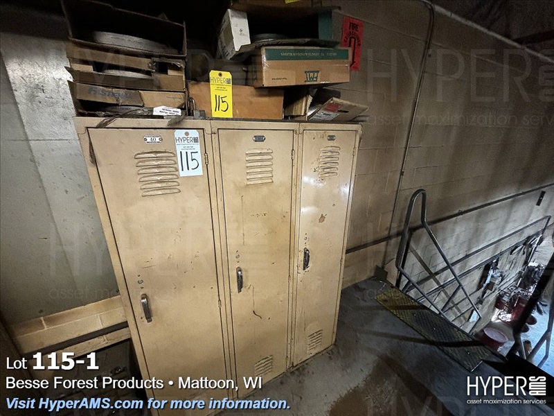3 DOOR LOCKER UNIT WITH CONTENTS-SAW BLADES, PRY BARS, STRAPS (LOCATED ON MEZZANINE)