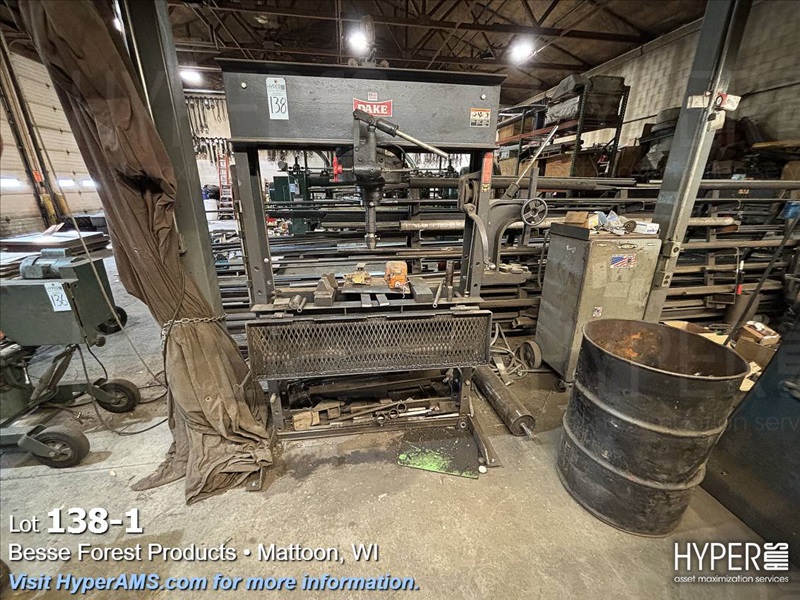 DAKE H FRAME PRESS, MODEL 75H, 44 1/2" BETWEEN COLUMNS, ARBOR PRESS ON THE SIDE
