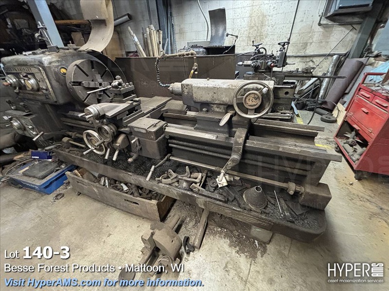 LODGE AND SHIPLEY LATHE 22" X 52", 1 3/4" THRU SPINDLE, 4 JAW 18" CHUCK, 3 JAW 14" CHUCK