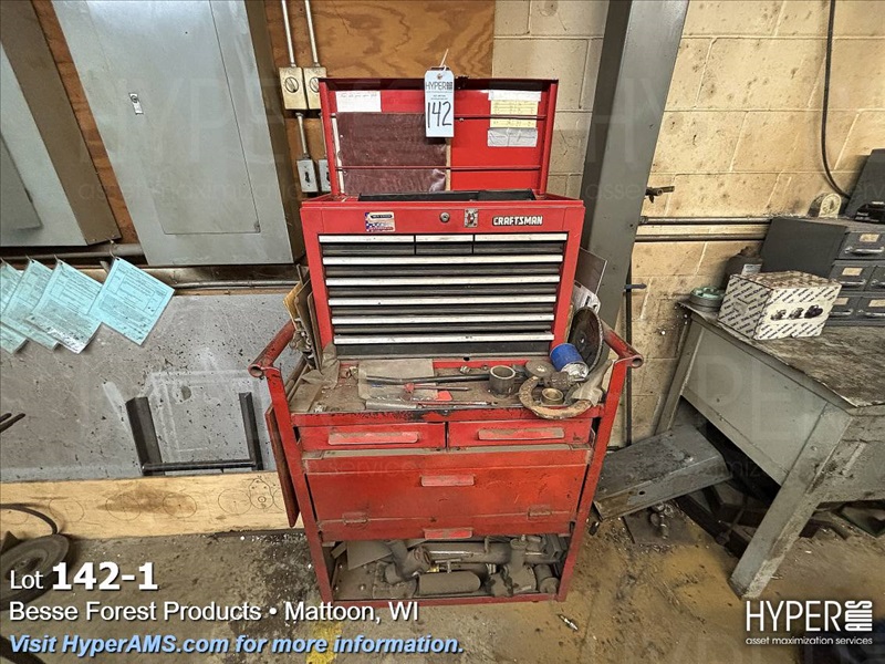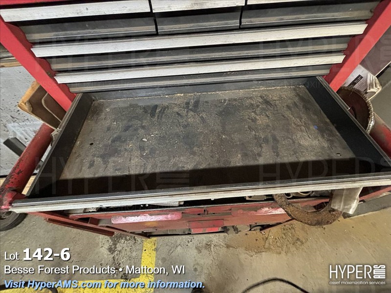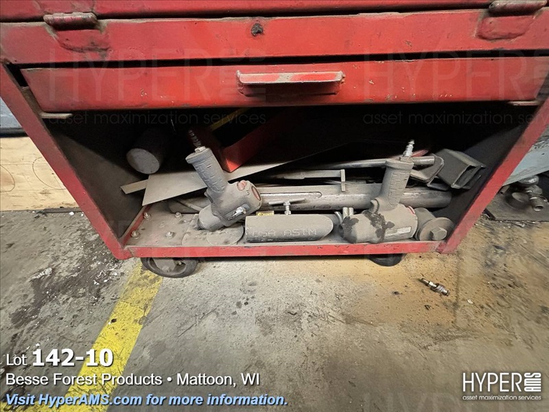 ROLL AROUND TOOL BOX WITH CONTENTS-BITS, TAPS, PRY BARS, AIR TOOLS (NEEDS REPAIRS)