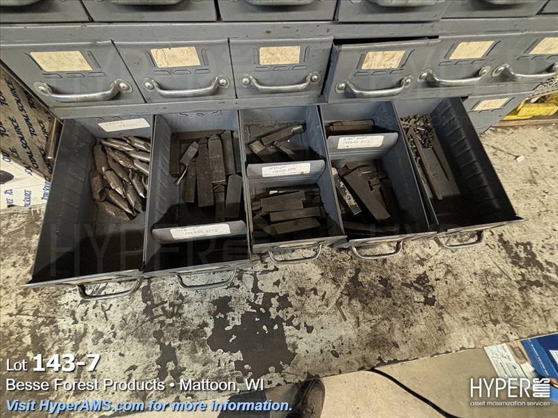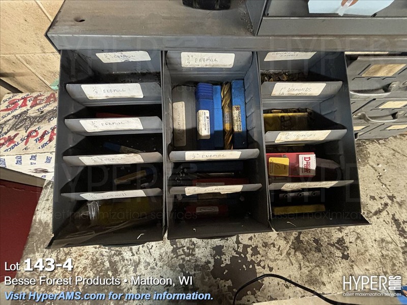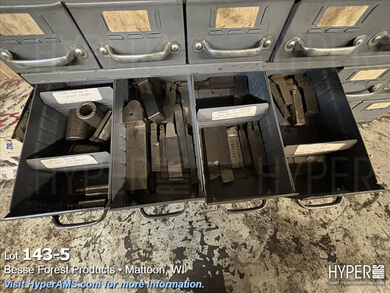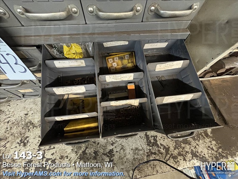 (1) 8 DRAWER EQUIPTO CABINET, (1) 18 DRAWER CABINET BOTH WITH CONTENTS-CUTTERS, INSERTS, END MILLS, ETC