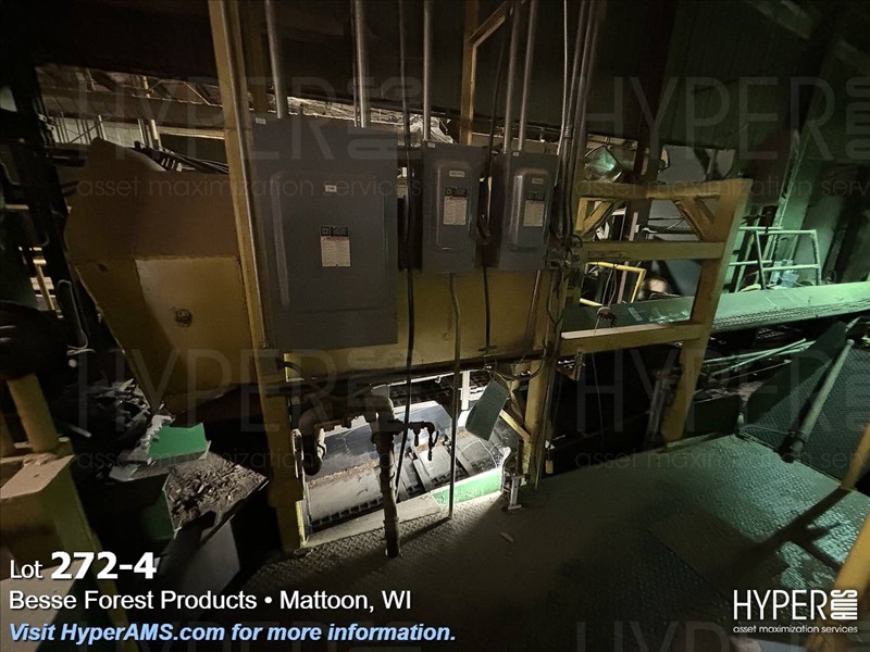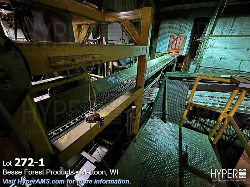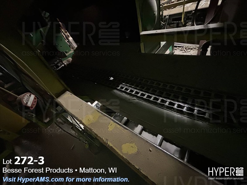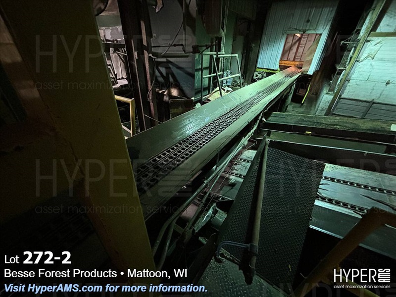 3 CHAIN CONVEYOR WITH A LOG CATCH ATTACHED APPX. 12"X40' (ENDS AT WALL)