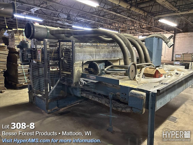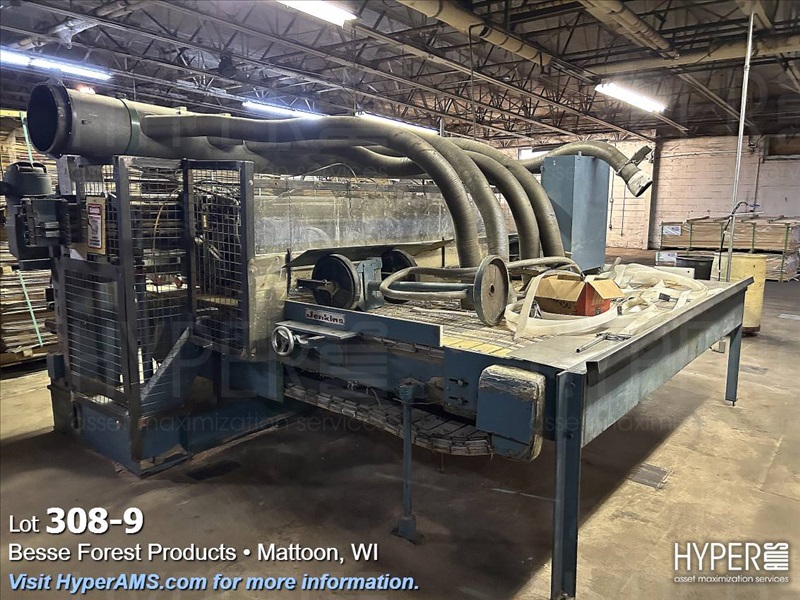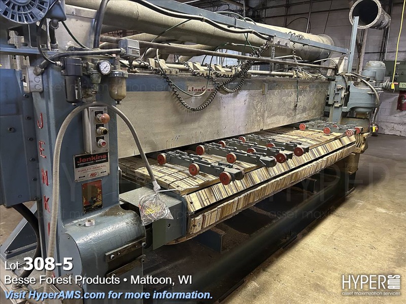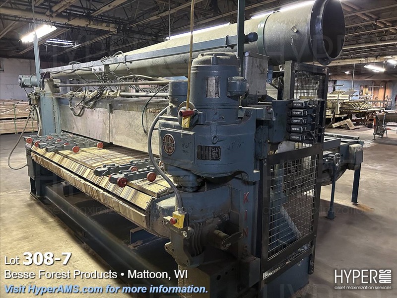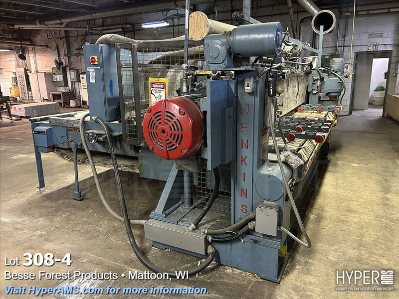 JENKINS MULTIPLE HEAD SAW, MODEL 1915B, S/N#1159, 10', NEEDS HEIGHT ADJUSTMENT SCREWS, HAS COMPLETE SET OF NEW DECK BOARDS AND OUT FEED TABLE
