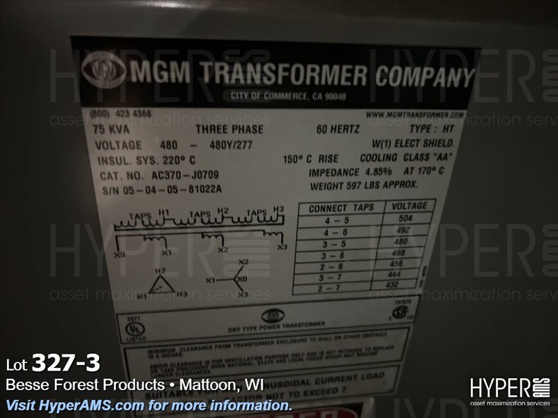 (2) TRANSFORMERS-(1) 175 KVA, (1) 75 KVA