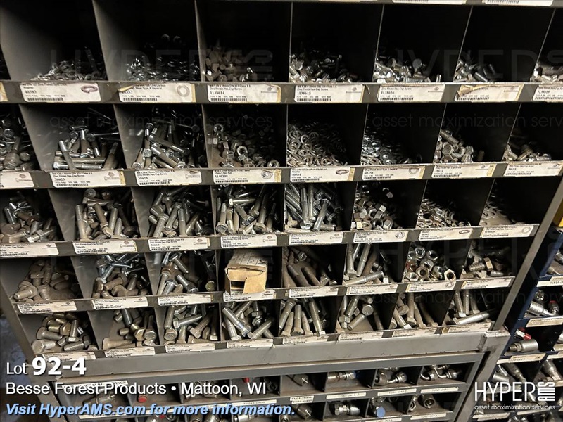 4 PARTS CABINETS (224 HOLES) OF FASTENERS, INCLUDES FLAP DISCS (LOCATED ON MEZZANINE)