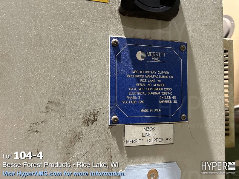 MERRITT 100" ROTARY CLIPPER MODEL MRC110, SER# M16860, WITH INFEED CONVEYOR 8' AND OUTFEED CONVEYOR 11' WITH UNCURLER BELTS, YEAR 2000 (SUBJECT TO THE BULK BID ON LOT 100)