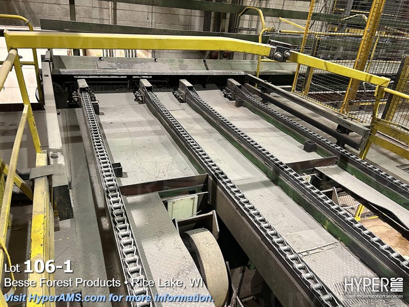 INFEED 4 CHAIN CONVEYOR 95" X 23', ELECTRIC DRIVEN, ADJUSTABLE RAILS (SUBJECT TO THE BULK BID ON LOT 105)