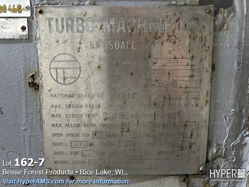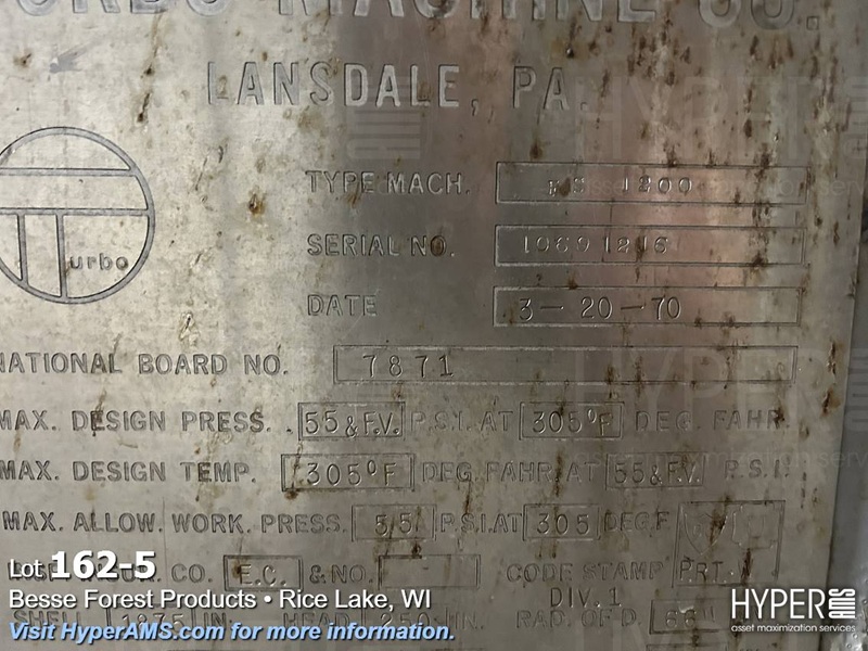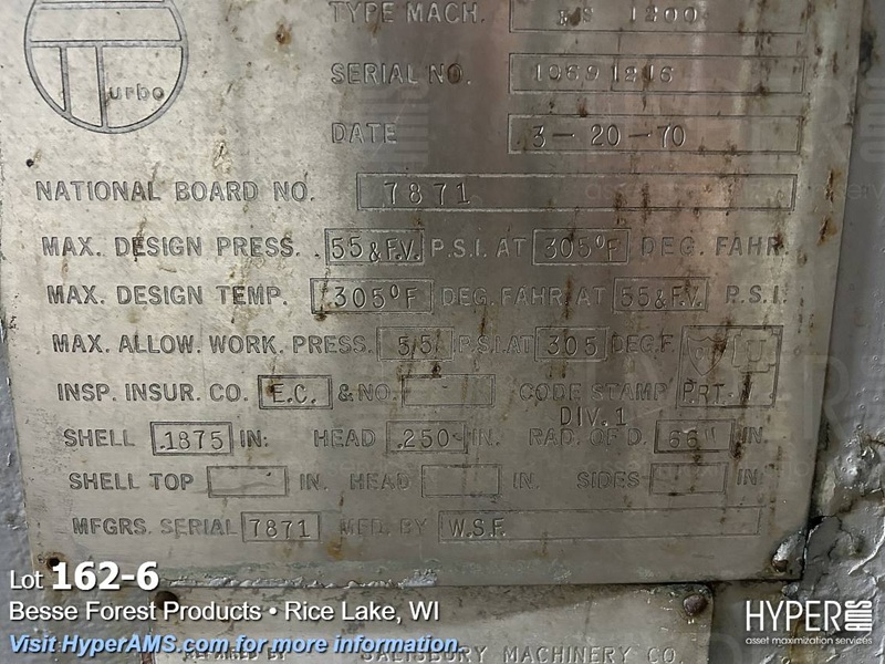 TURBO MACHINE AUTO CLAVE, 70" DIA. X 13' LONG, TYPE ES1200, YEAR 1970, S/N#10691216