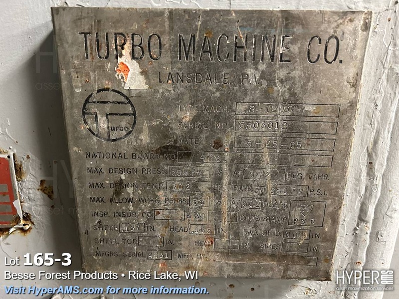 TURBO MACHINE AUTO CLAVE 59" DIA. X 9', YEAR 1965