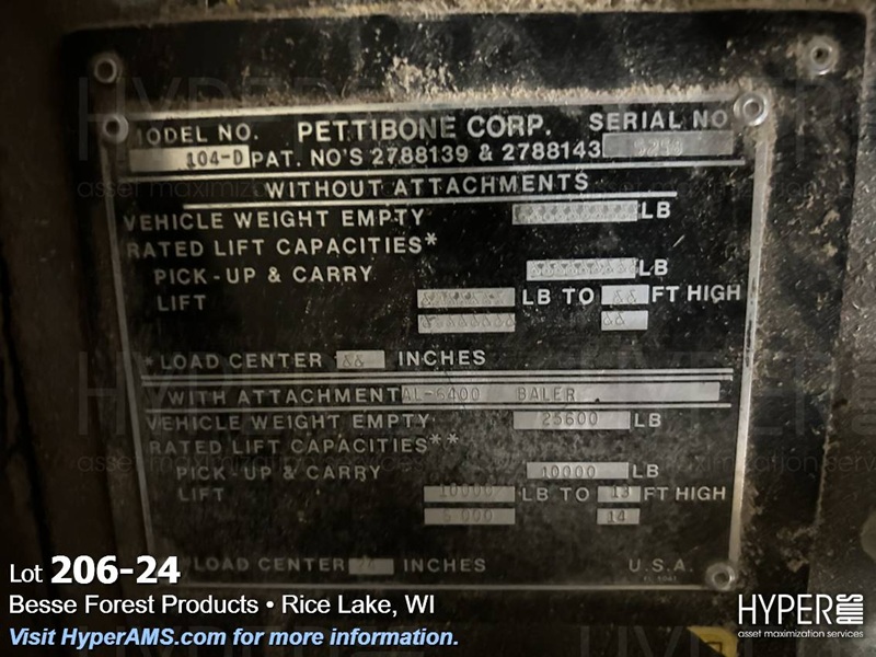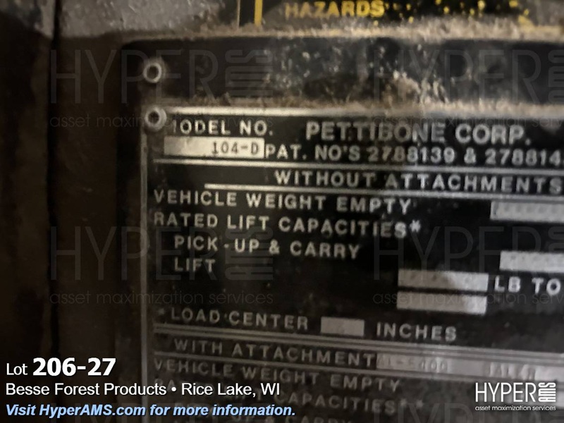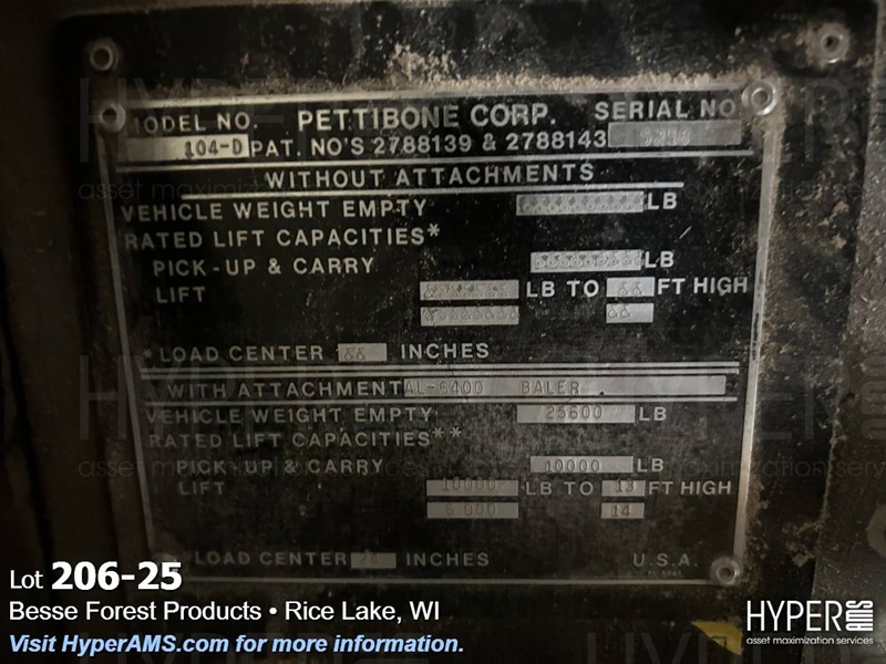 PETTIBONE 104-D 10,000 LB CAP. CARY-LIFT FORKLIFT, 52 1/2" FORKS, 2 WHEEL 4 WHEEL DRIVE,TILT BODY, S/N 5258