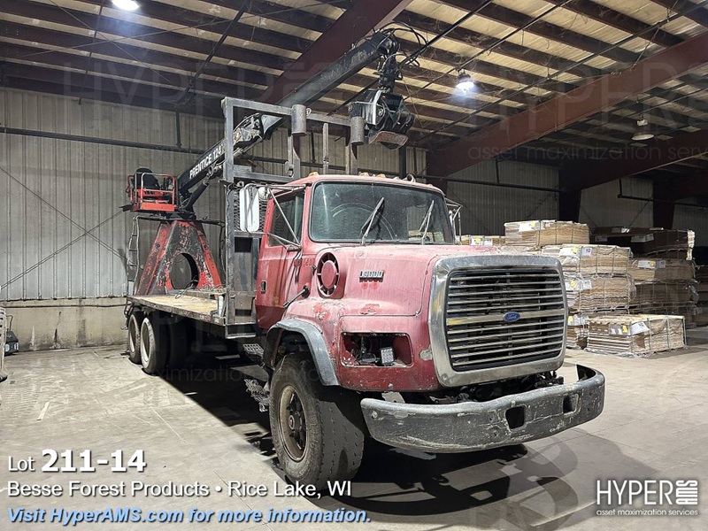 1994 FORD L9000 LOG TRUCK WITH PRENTICE W1124-BC GRAPEL, VIN: 1DFZY90L7RVA50517