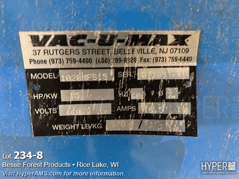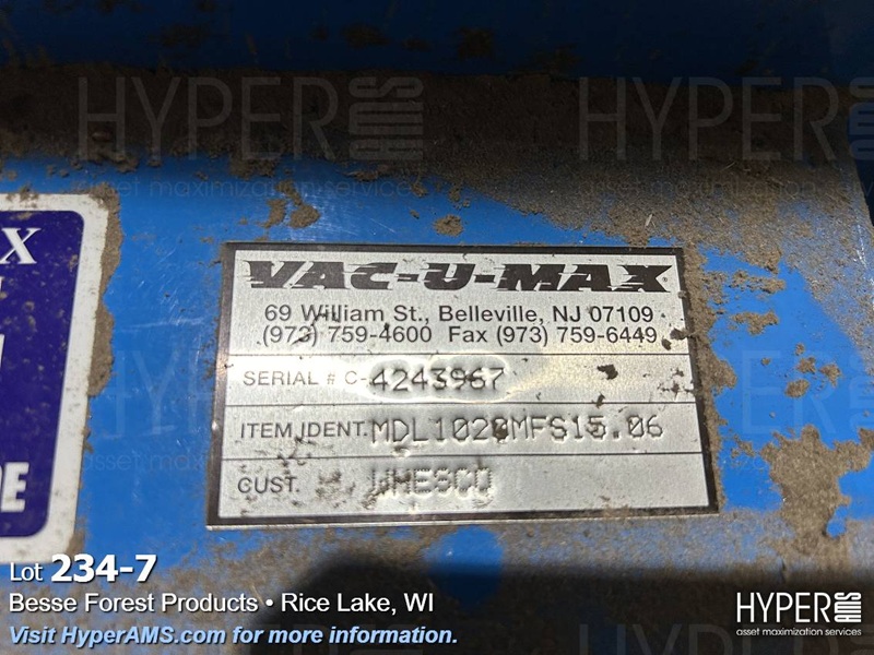 VAC-U-MAX 1020 SHOPVAC, 460V, 3PH, S/N 4243967