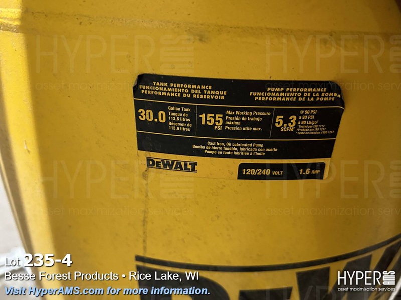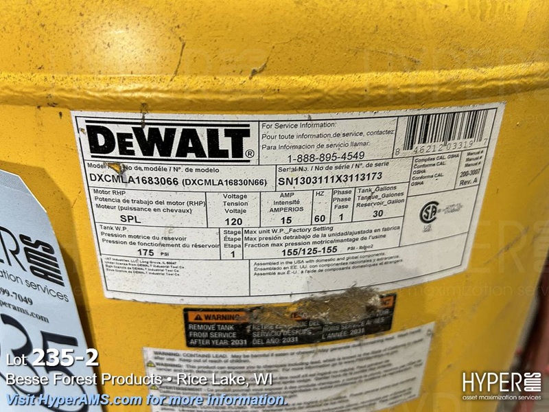 DEWALT 175 PSI AIR COMPRESOR, 120V, 1 PH,