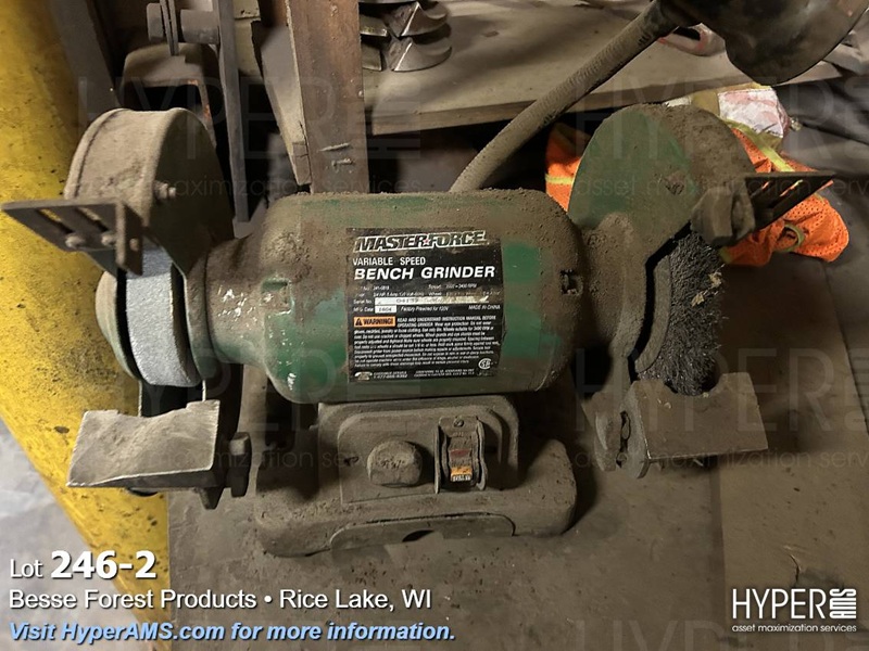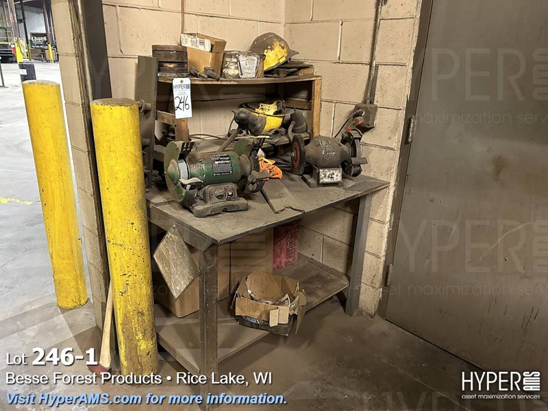 TABLE WITH (2) DOUBLE END BENCH GRINDERS