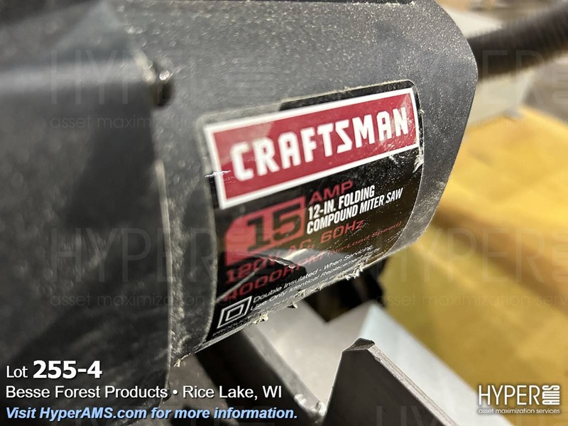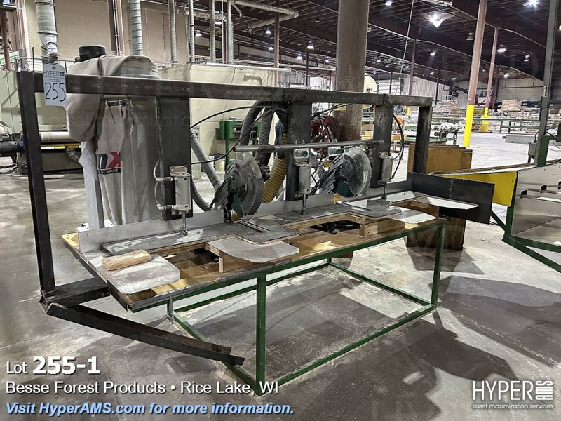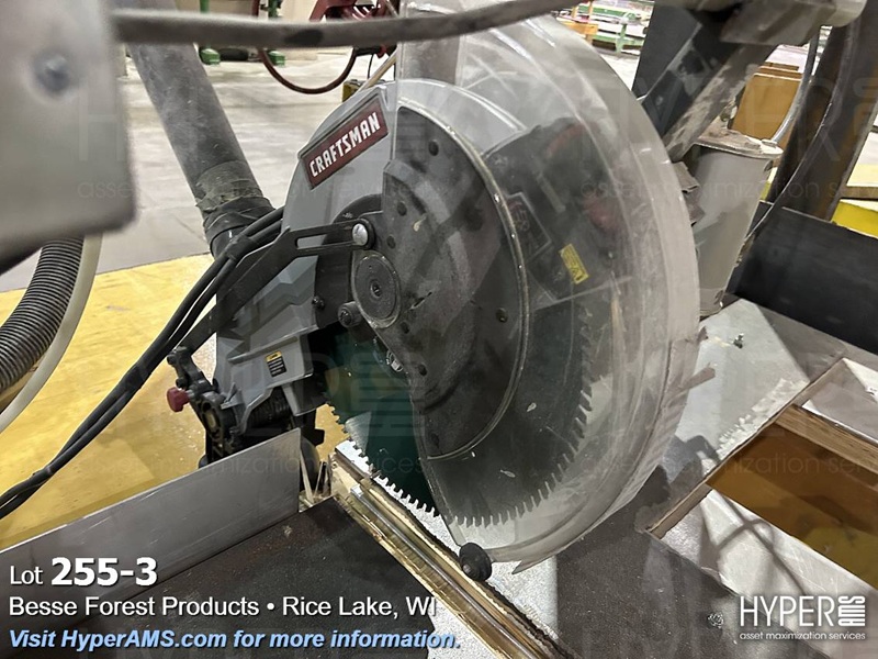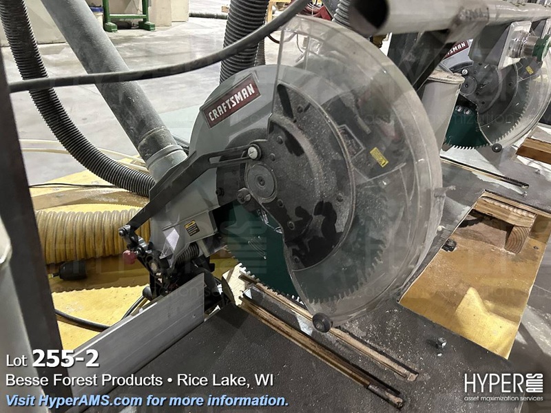 CUTTING TABLE WITH (2) CRAFTSMAN CHOP SAWS AND DUST COLLECTOR, 4'X8'