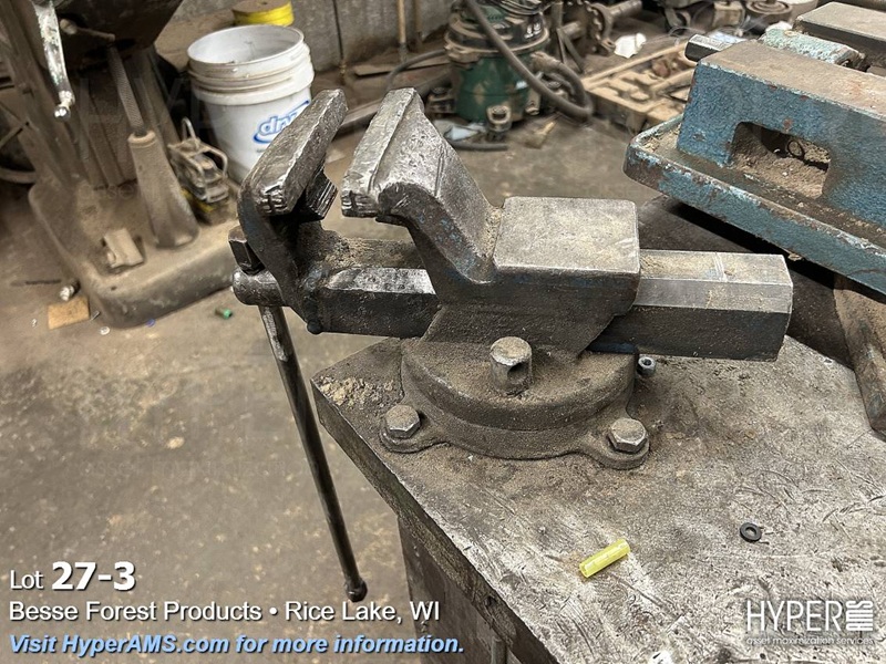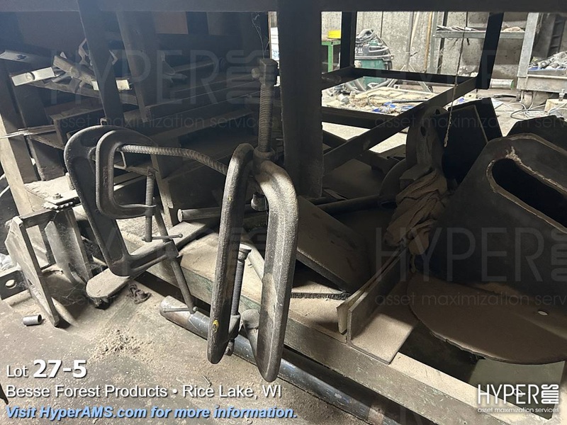 STEEL TABLE 5' X 14' WITH TWO BENCH VISES
