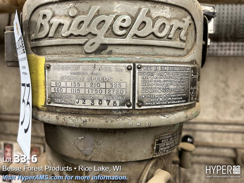 BRIDGEPORT VERTICAL MACHINE CENTER, 42" X 9" T-SLOT TABLE, SPINDEL SPEED 80 TO 2720, S/N R34152