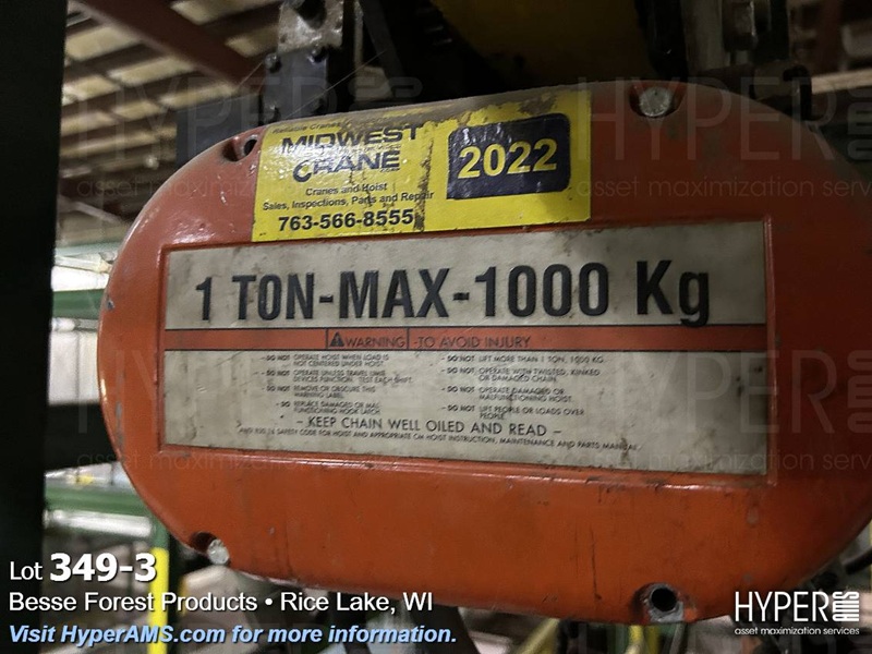 CM 1 TON HOIST WITH POWER TROLLEY, 460 VOLT