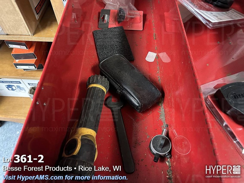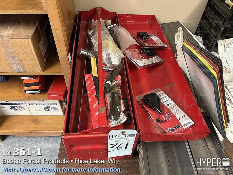 RED TOOL BOX WITH CONTENTS-WRENCHES, IMPACT, HAMMER