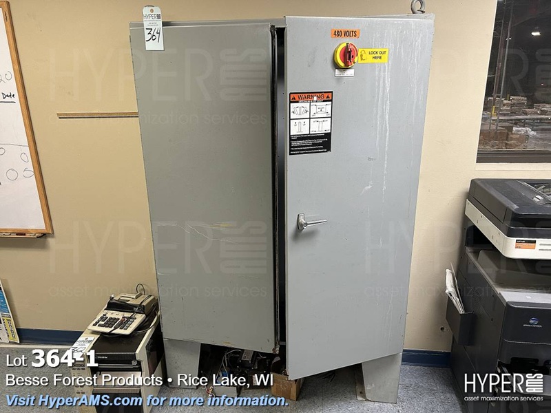 EMPTY ELECTRIC CABINET WITH ASSORTED ELECTRIC ITEMS UNDER IT