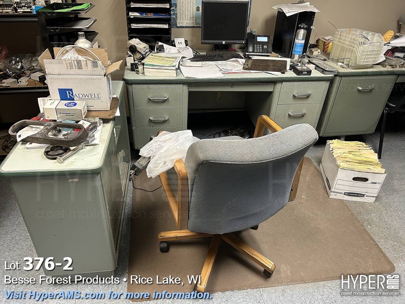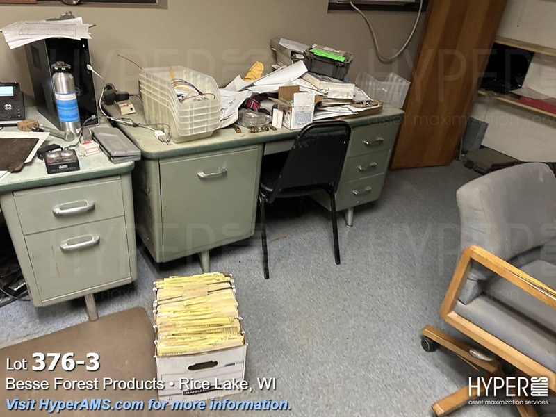 FURNITURE IN OFFICE-DRAFTING TABLE, (3) DESKS, (3) CHAIRS, (2) BOOK CASES (DOES NOT INCLUDE PRINTS OR PRINT RACK, COMPUTERS, PRINTERS, ETC.)