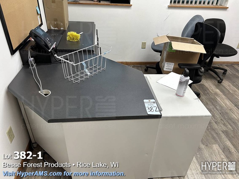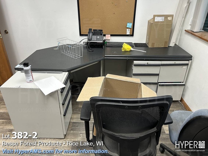 DESK AND (3) CHAIRS (DOES NOT INCLUDE ANY COMPUTERS, PRINTERS, ETC-FURNITURE AS LISTED ONLY)