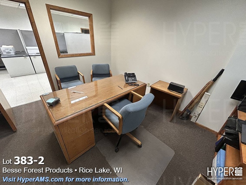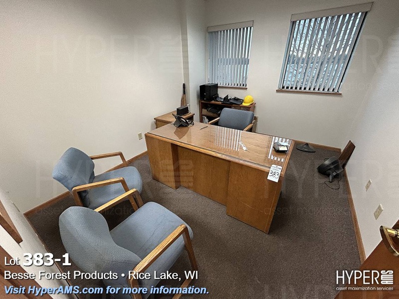 FURNITURE IN OFFICE-BOOK CASE, STAND, DESK, (3) CHAIRS (DOES NOT INCLUDE ANY COMPUTERS, PRINTERS, ETC-FURNITURE AS LISTED ONLY)