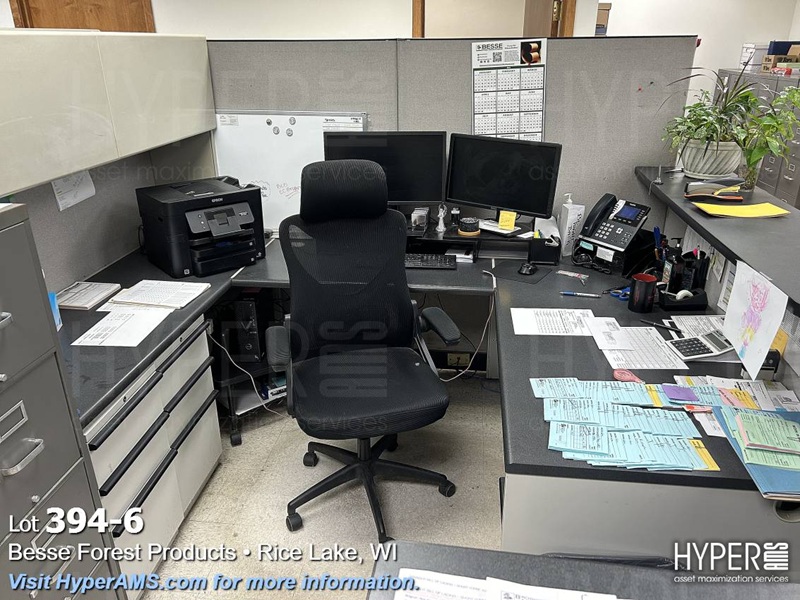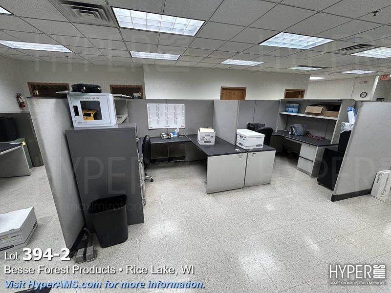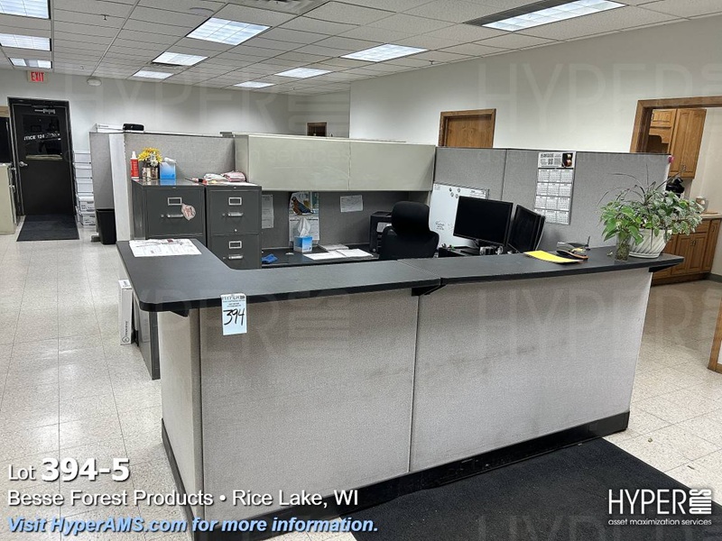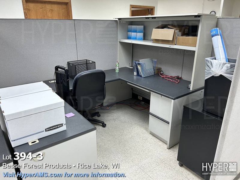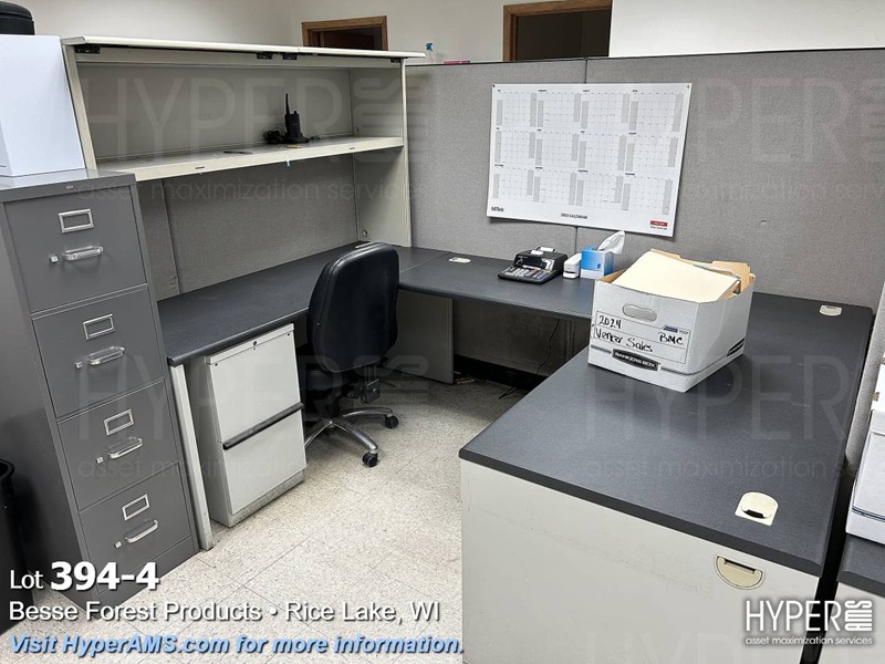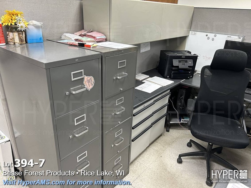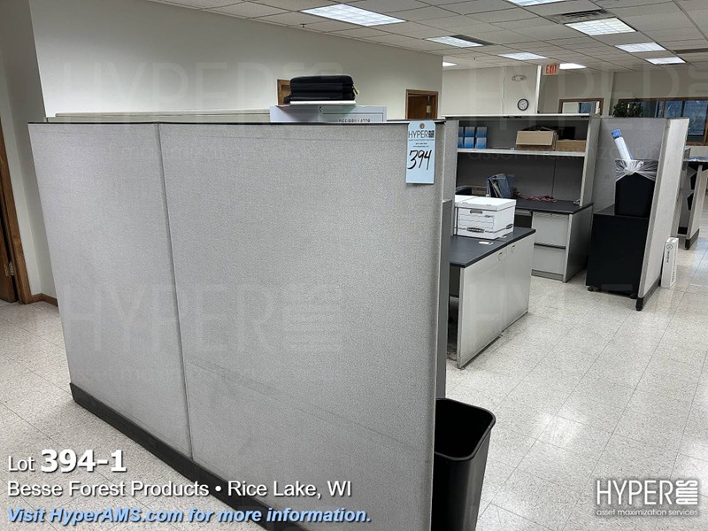 (3) CUBICLE UNITS 8' X 25'-(3) 4 DRAWER FILES, (3) CHAIRS, BOOK CASE (DOES NOT INCLUDE ANY COMPUTERS, PRINTERS, ETC-FURNITURE AS LISTED ONLY)