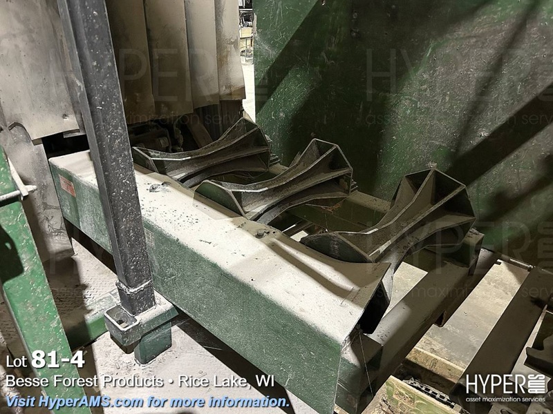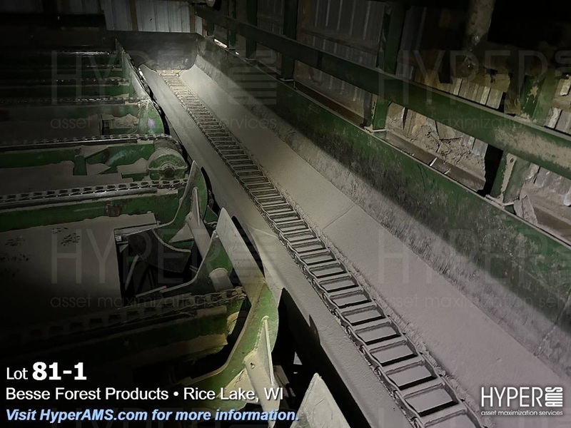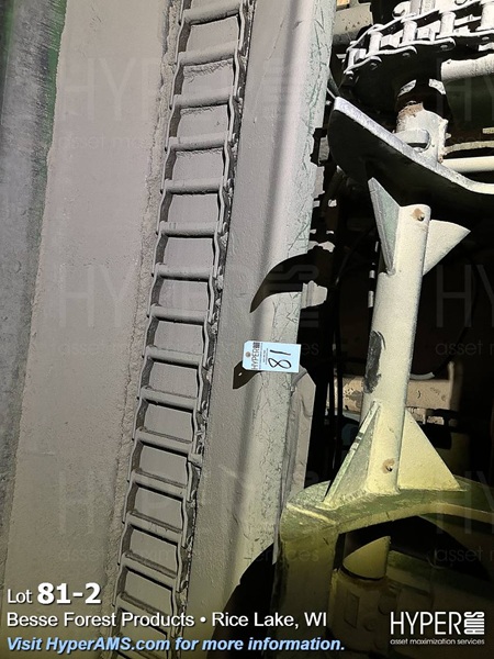 INFEED CONVEYOR 110 CHAIN, APPX 29' LONG WITH (3) HOUR GLASS ROLLERS AND HYDRAULIC UNIT