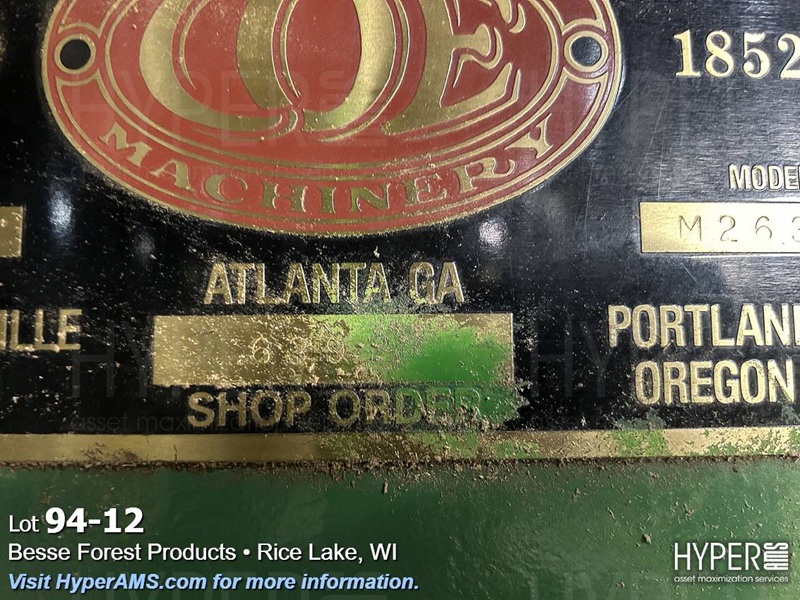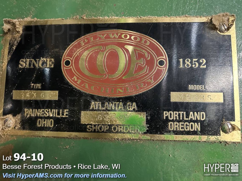COE MODEL 263 66" VENEER LATHE, 5" SPINDLE, GEO CHARGER, (7) SPARE KNIVES, CARTADE DRIVE UPDATED TO A MERRITT (SUBJECT TO THE BULK BID ON LOT 92)