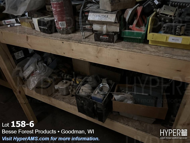 ITEMS ON THE SHELF; PLUGS, AB SWITCHES, FUSES, SUNNEN STONES, AND LIGHTS