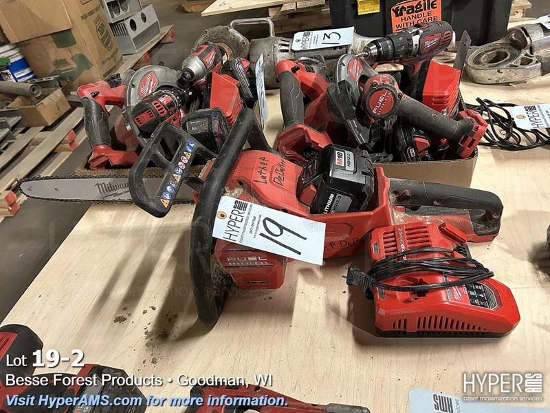 MILWAUKEE M18 CHAIN SAW, CHARGER, AND BATTERY